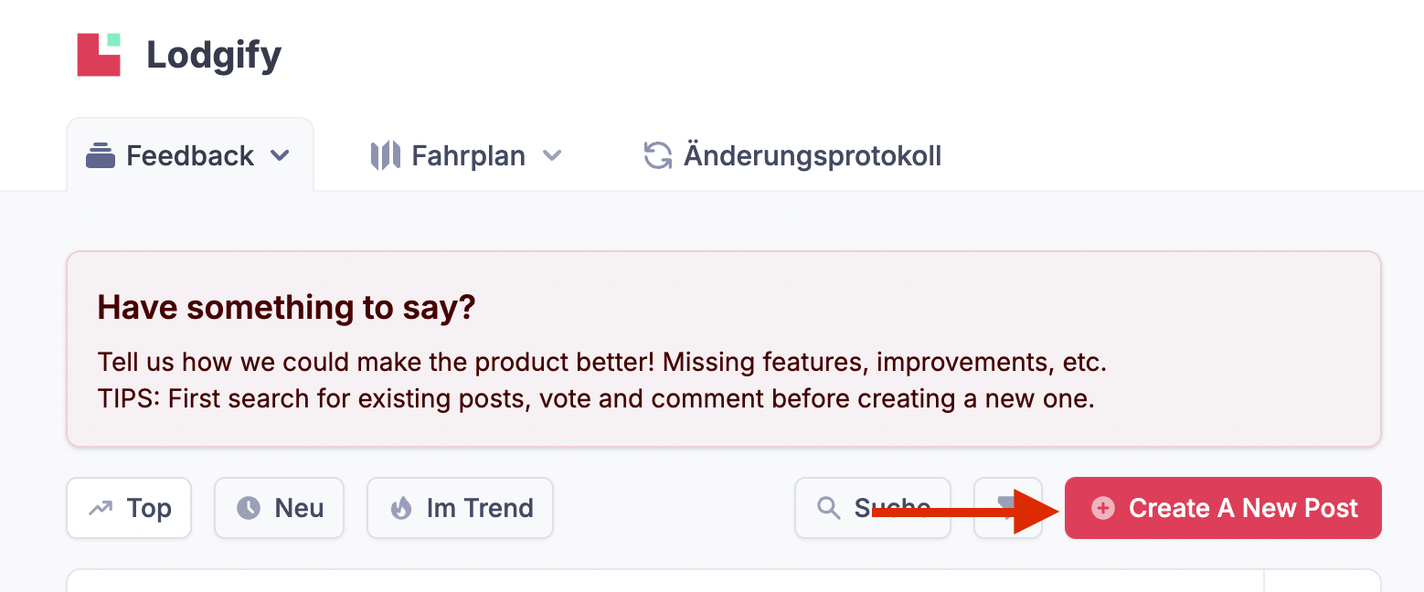 Falls ja, können Sie dafür abstimmen und kommentieren, um dem Beitrag mehr Gewicht zu verleihen. - Falls kein ähnlicher Beitrag existiert, klicken Sie auf Create a new post: