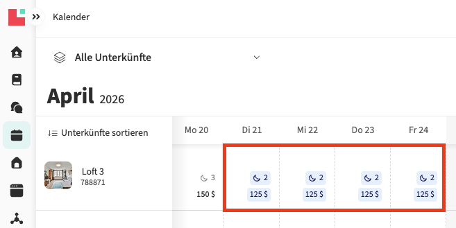 💡Hinweis: Manuelle Preisanpassungen deaktivieren Kurzaufenthaltspreise