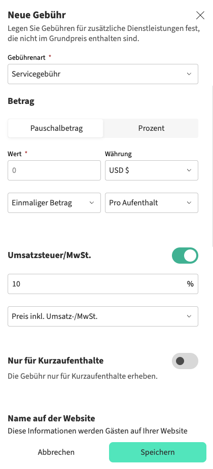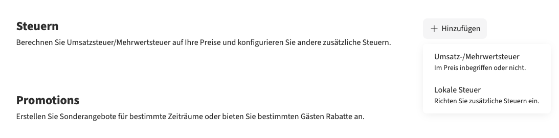 Die Umsatzsteuer kann in Lodgify auf zwei Arten angewendet werden: