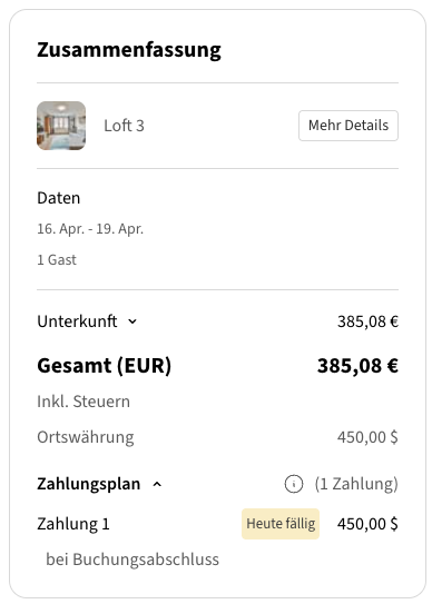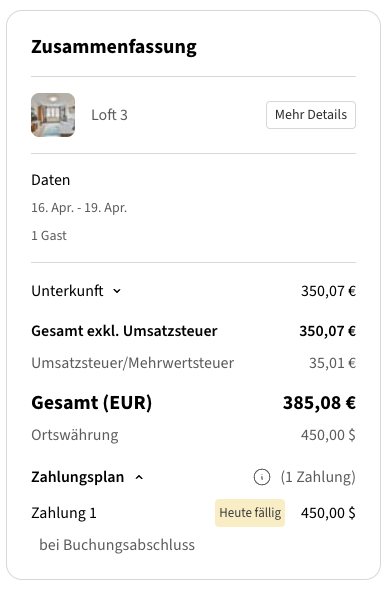 Sie können wählen, wie die Steuer den Gästen während des Checkout-Prozesses angezeigt wird: