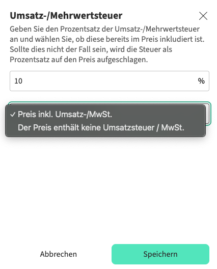 | Inklusive Umsatzsteuer | Exklusive Umsatzsteuer |