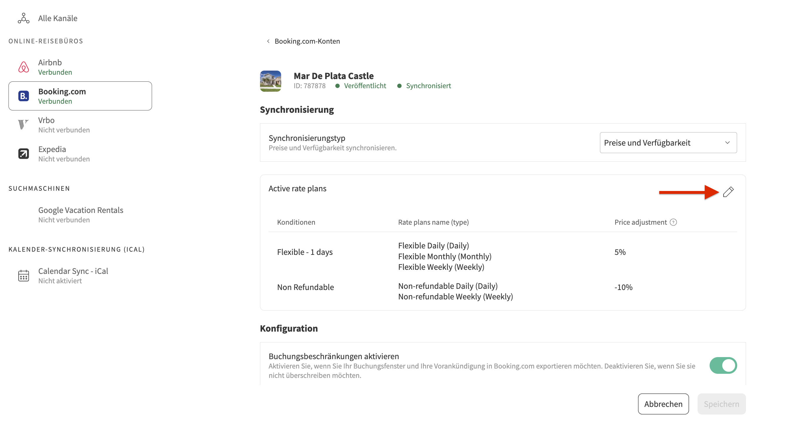 Wenn Sie auf Booking.com mehrere Tarifpläne eingerichtet haben (z. B. einen nicht erstattbaren Tarif), müssen Sie die Preise für diese entsprechend anpassen.