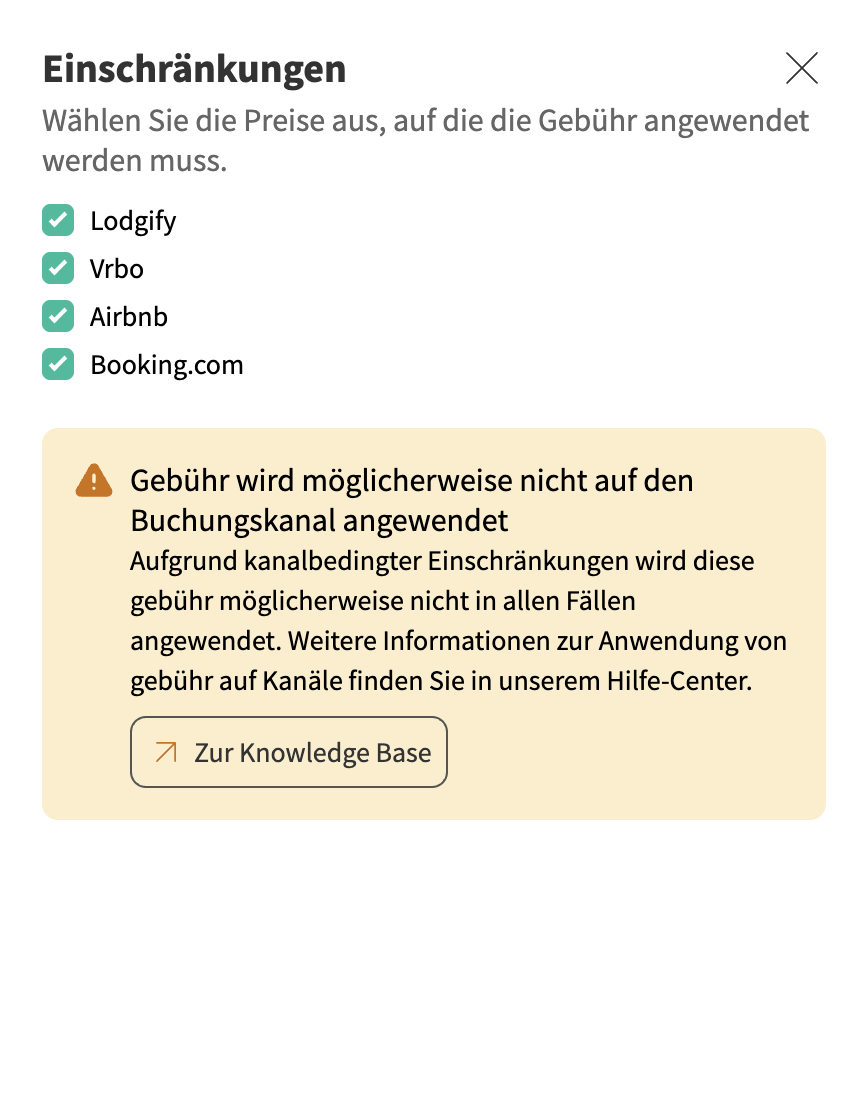 ⚠️ Wichtig: Die Auswahl eines OTAs garantiert nicht, dass die Einschränkung korrekt übernommen oder vom Kanal unterstützt wird. Eine Übersicht darüber, was für jeden Kanal importiert und exportiert wird, finden Sie hier.