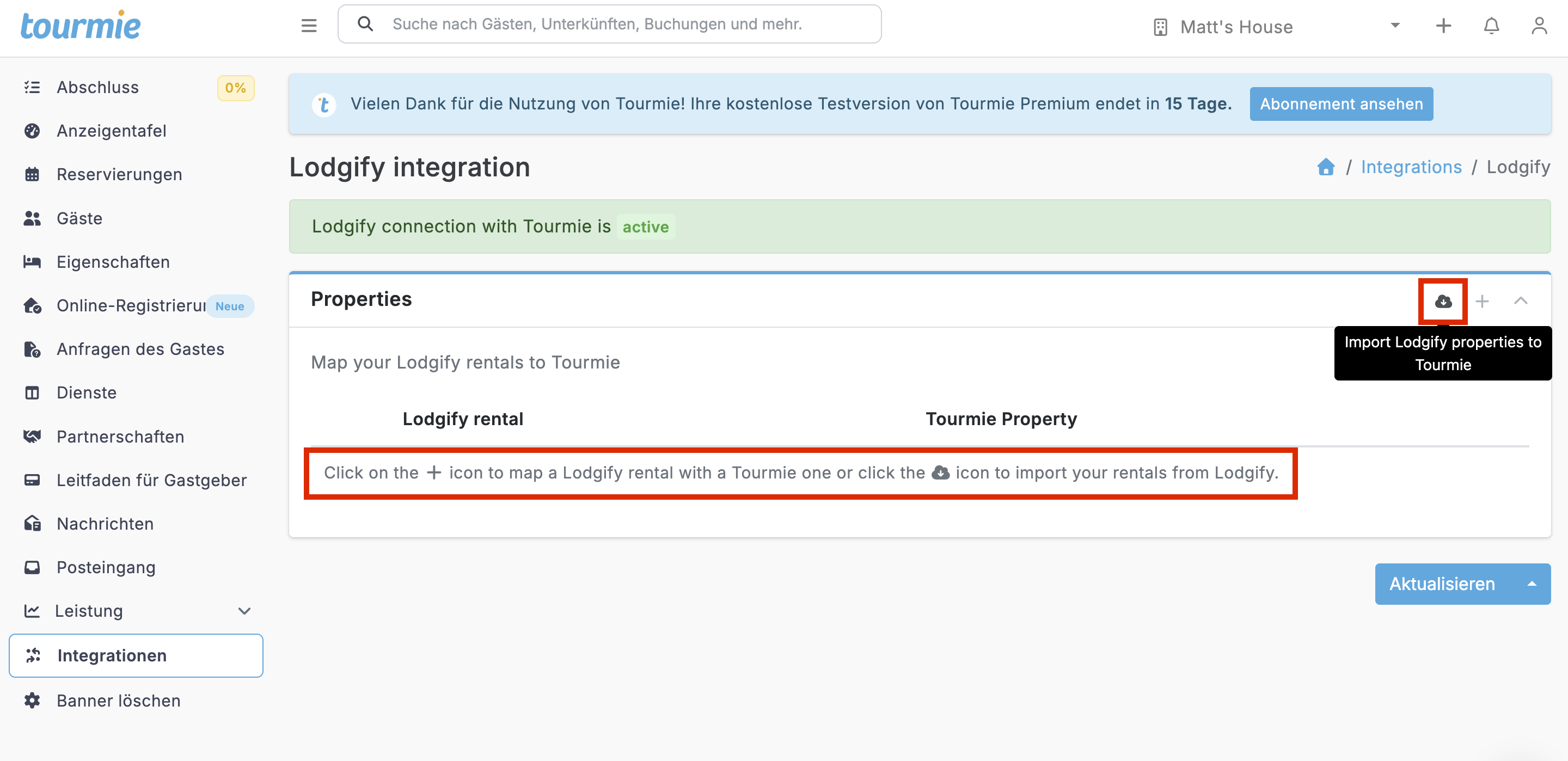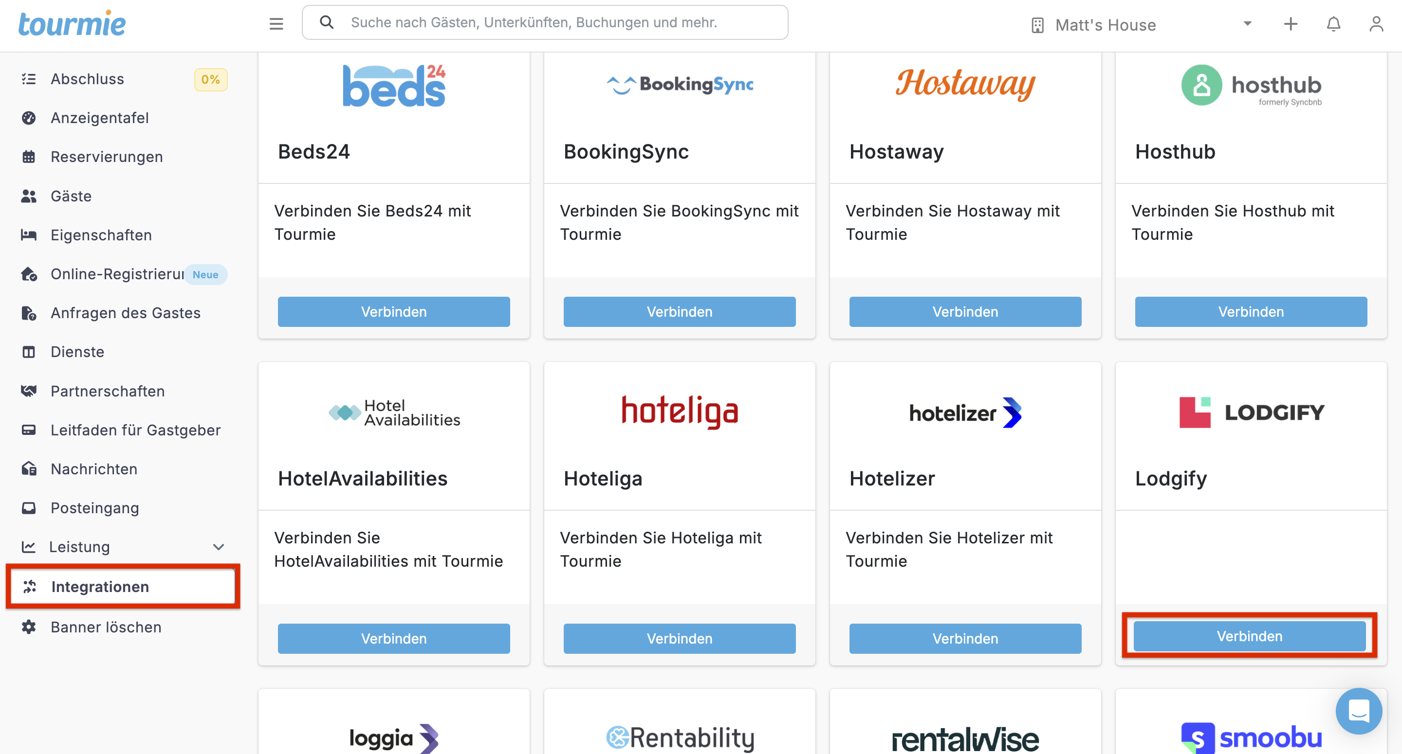 Verbindung zwischen Lodgify und Tourmie einrichten