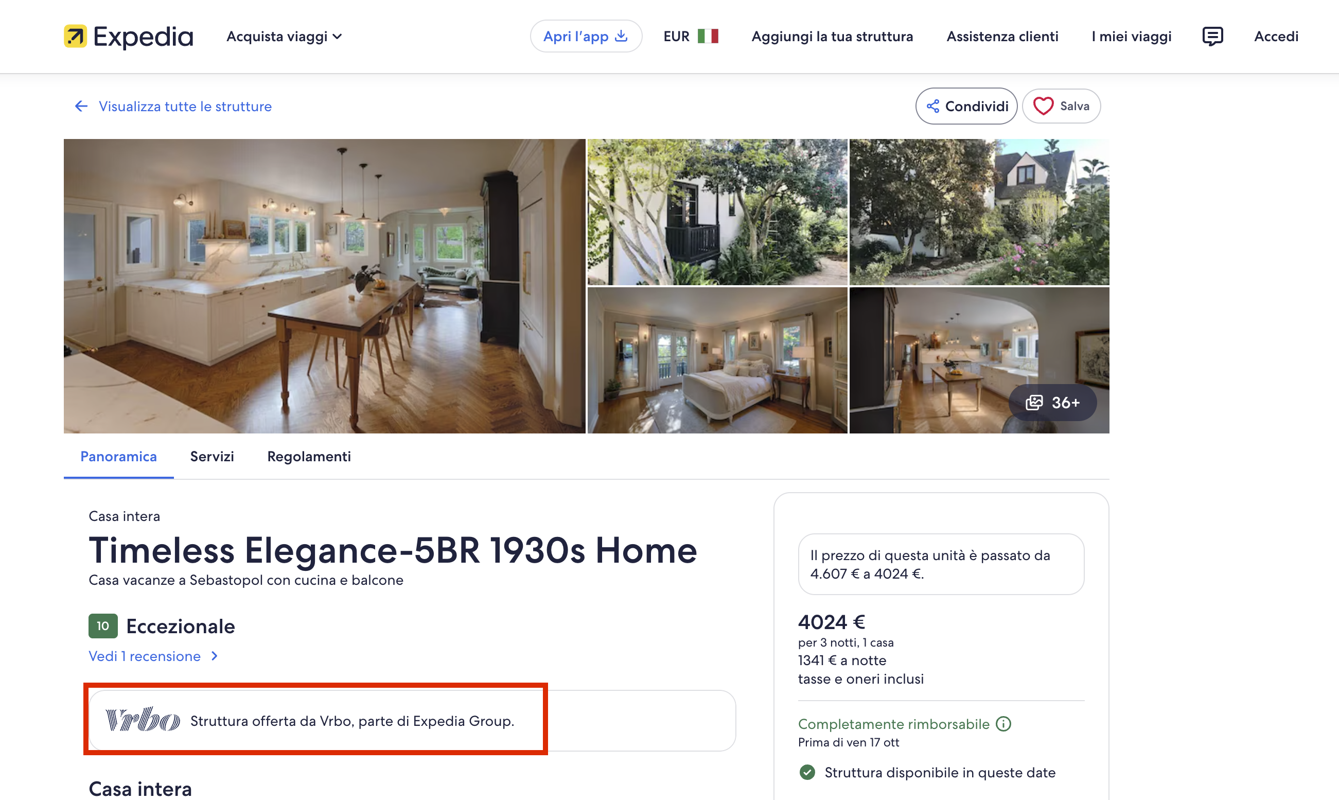 - So sieht Ihr Inserat auf Expedia aus, mit dem Hinweis, dass es von Abritel bereitgestellt wird: