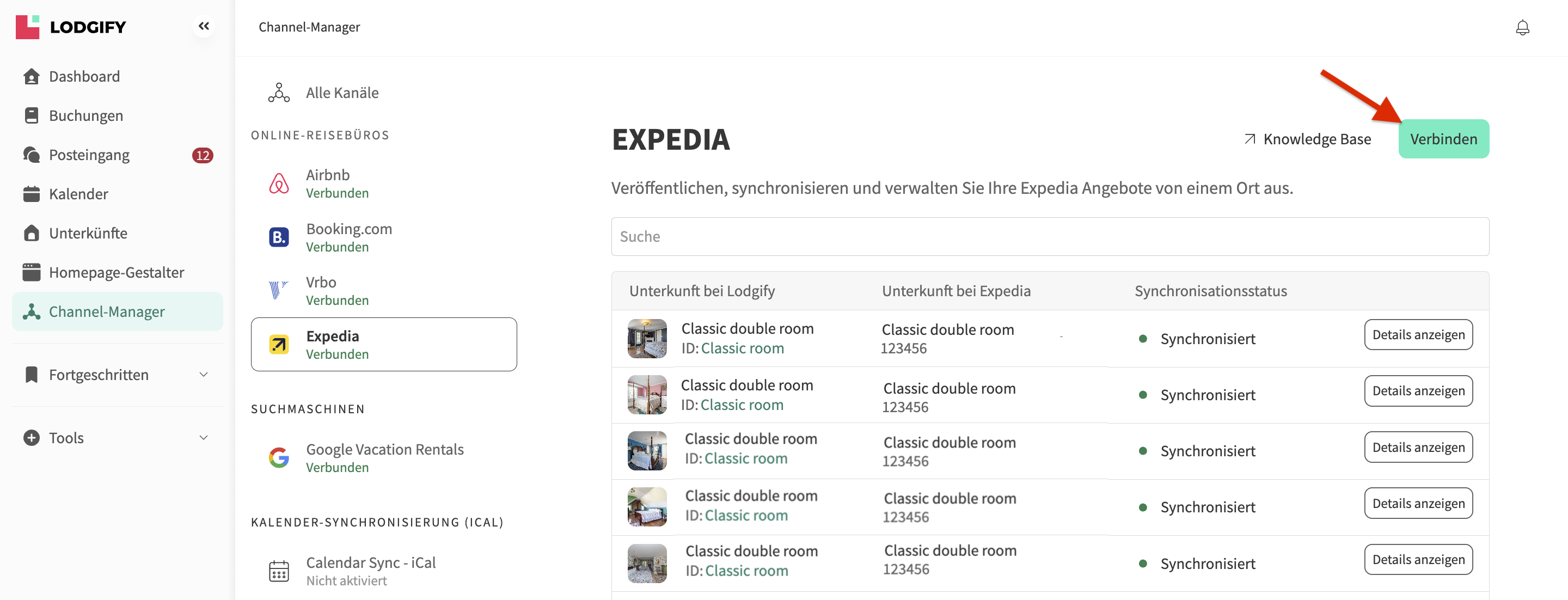 - Die endgültige Entscheidung, ob Ihre Unterkünfte auf Expedia angezeigt werden, liegt beim Expedia-Konzern.