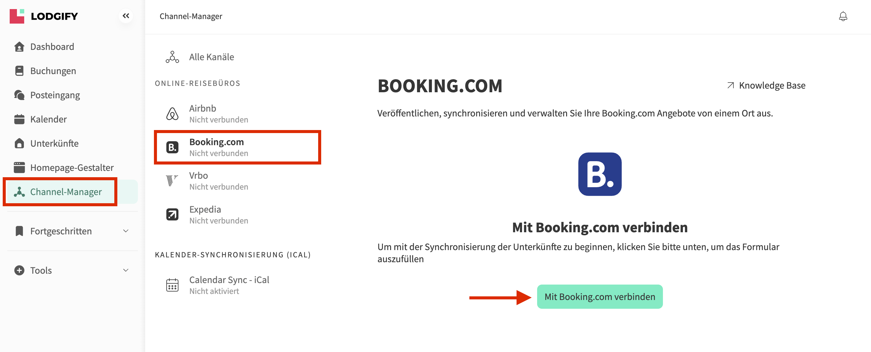 💡 Hinweis: Derzeit kann pro Lodgify-Konto nur ein Booking.com-Konto erstellt werden.