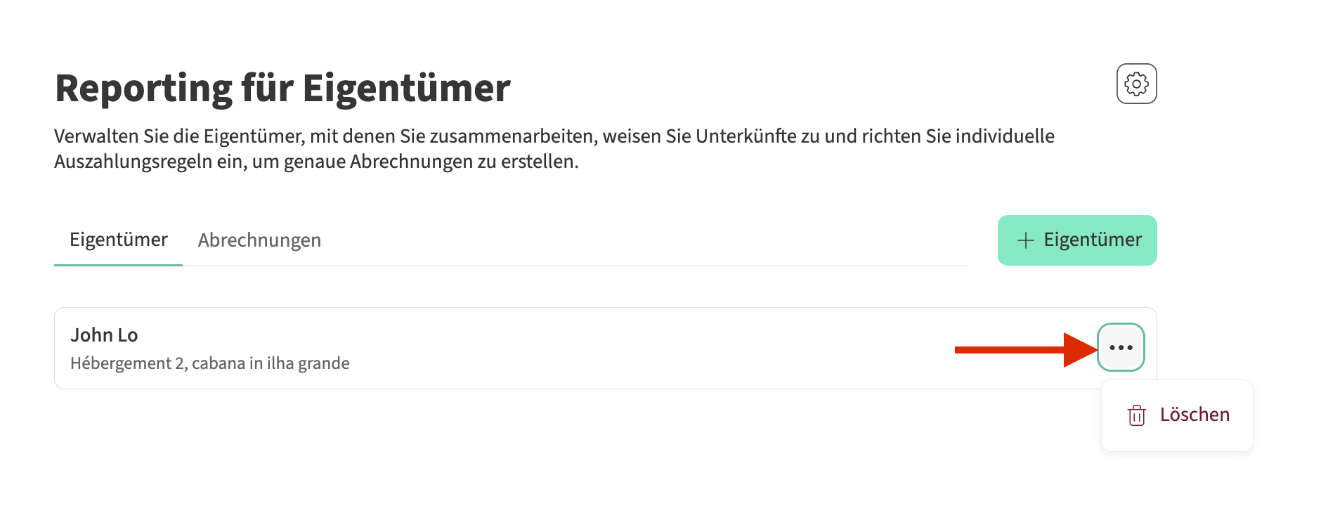 Um die Profilinformationen, die zugeordneten Unterkünfte oder die Auszahlungsregeln eines Eigentümers zu bearbeiten, folgen Sie diesen Schritten: