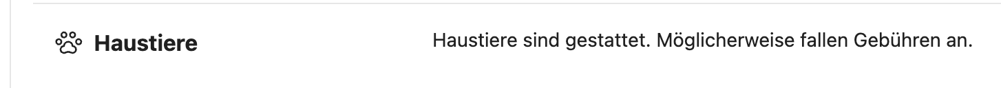Gäste müssen Sie dann direkt kontaktieren, um zu bestätigen, ob Haustiere erlaubt sind und welche Gebühr gilt.