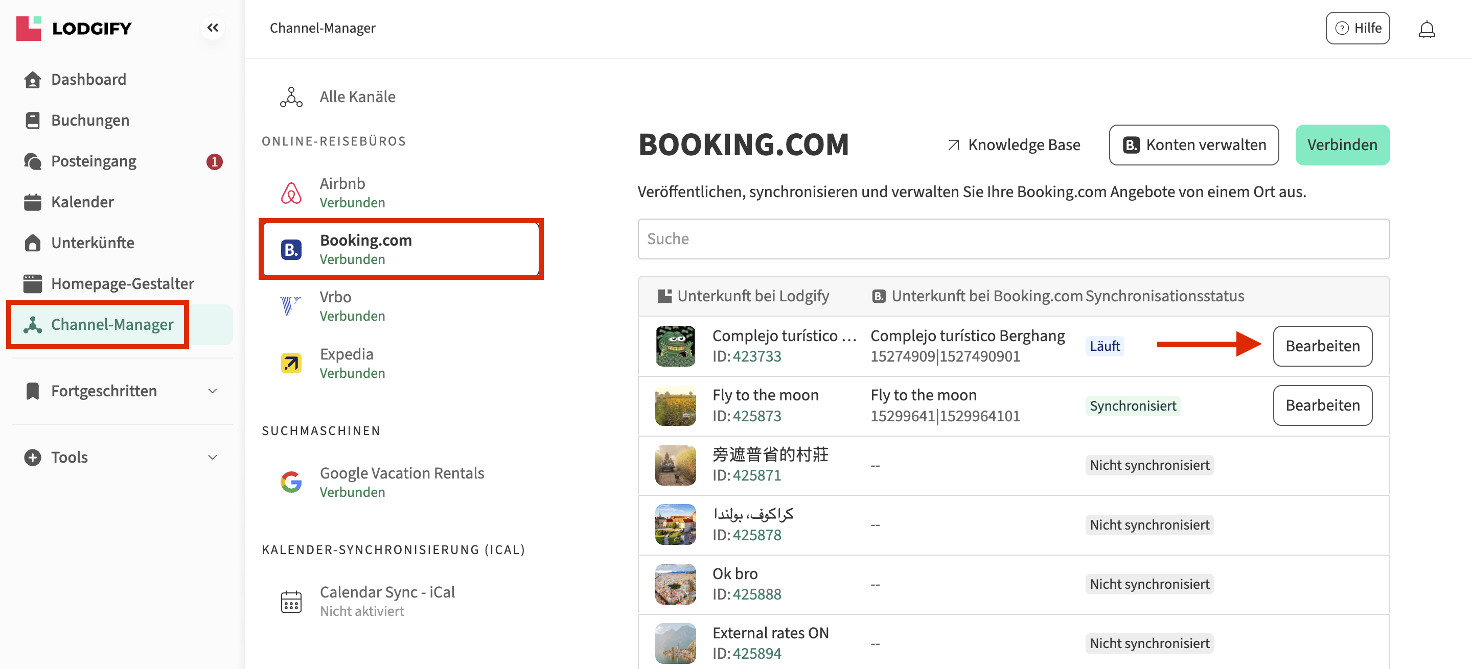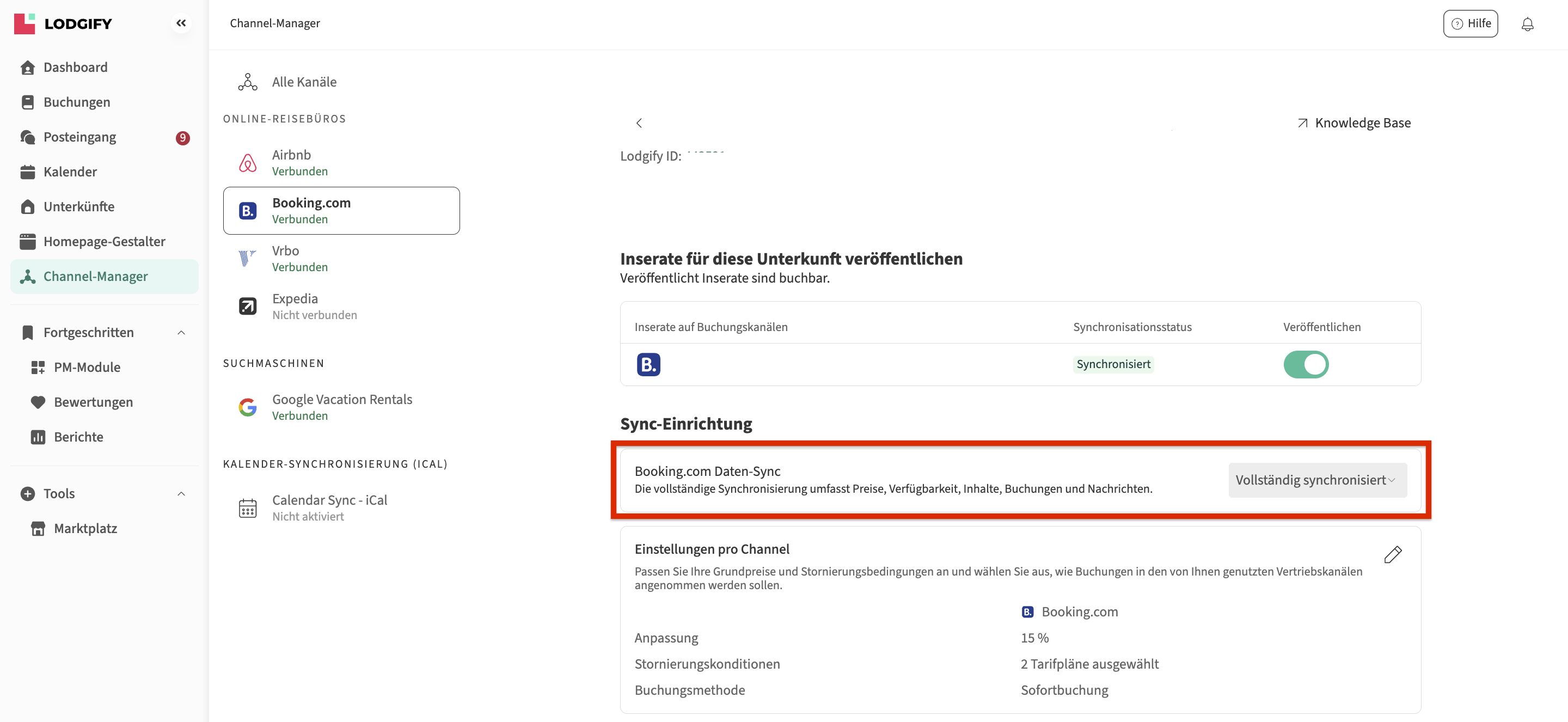 Die Integration mit Booking.com ist eine bidirektionale Synchronisierung.