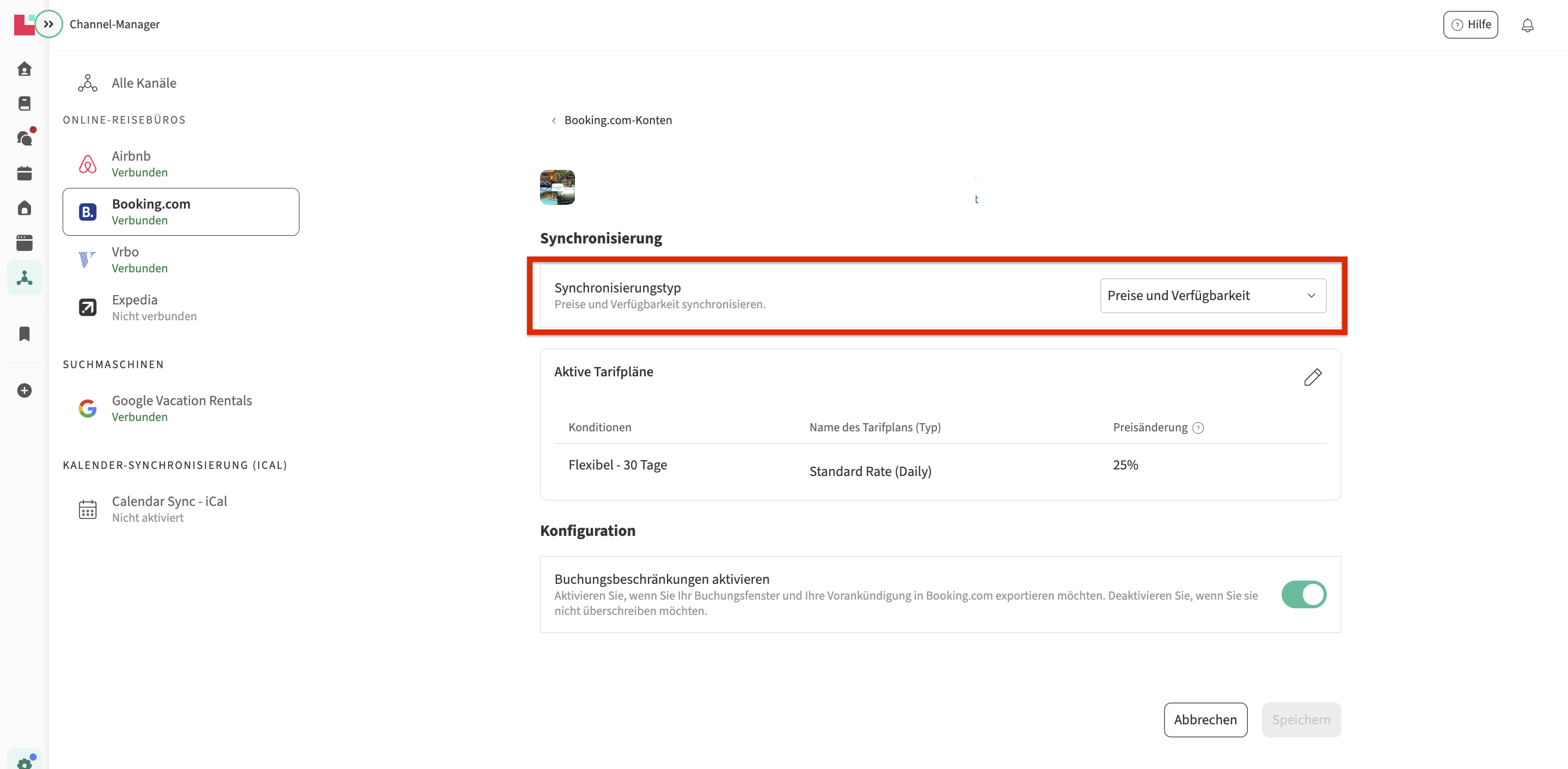- Andernfalls ist Ihre Unterkunft nicht vollständig synchronisiert und verwendet nur Preise und Verfügbarkeit:
