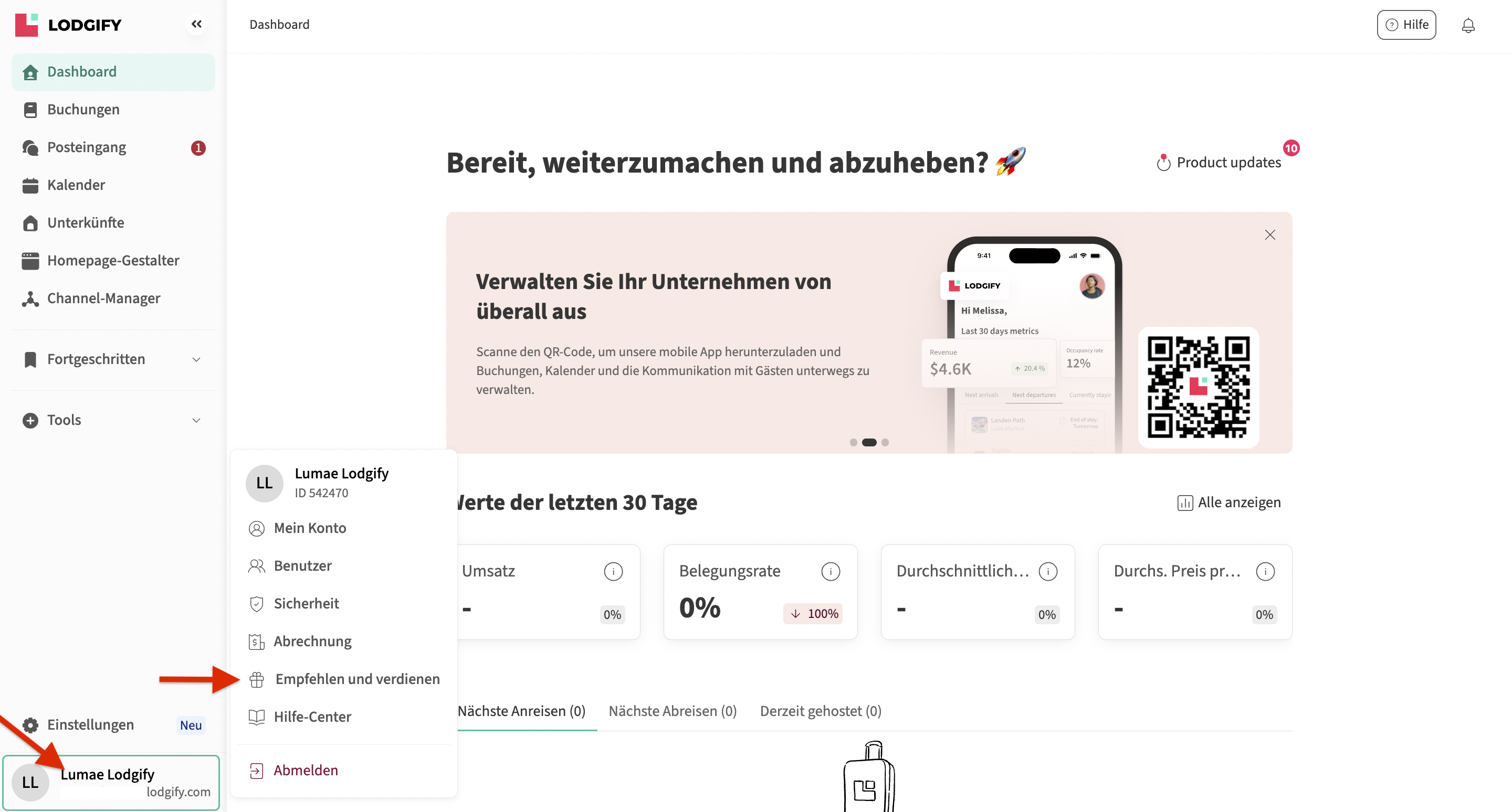 In diesem Bereich können Sie außerdem den Status der Belohnungen Ihrer Lodgify-Empfehlungen ansehen.