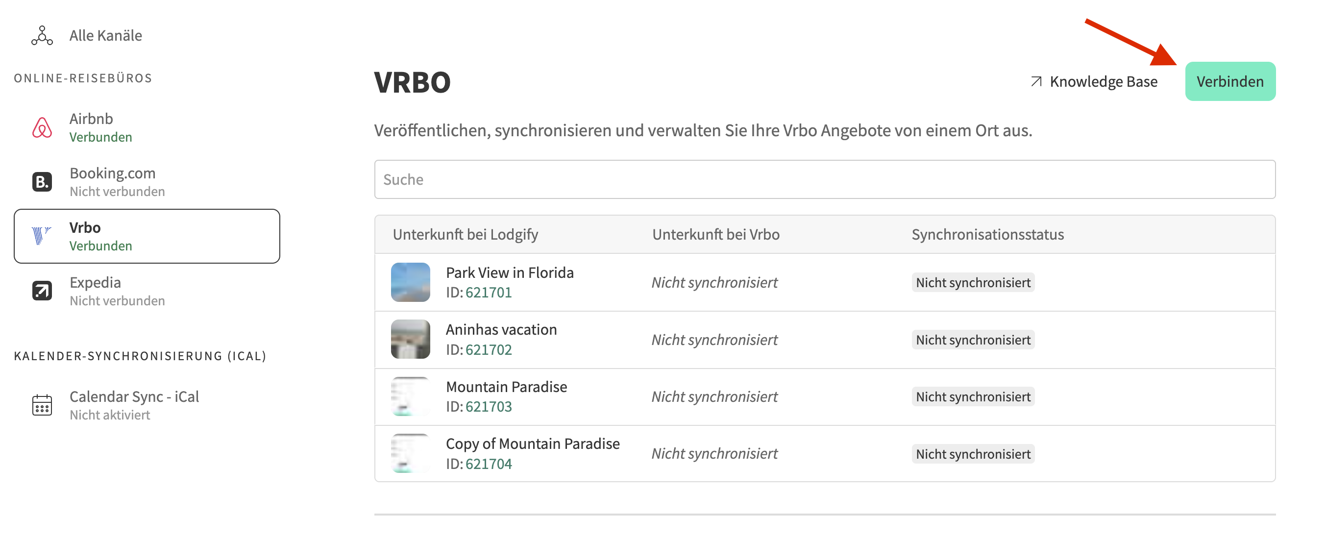 Anschließend können Sie Ihre Vrbo-Unterkünfte verbinden.