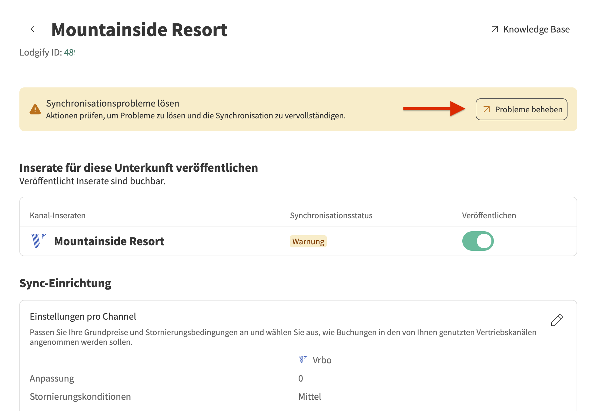 ⚠️ Wichtig: Bitte beheben Sie alle Synchronisierungsprobleme innerhalb von 5 Tagen, um zu vermeiden, dass Vrbo Ihr Projekt storniert.