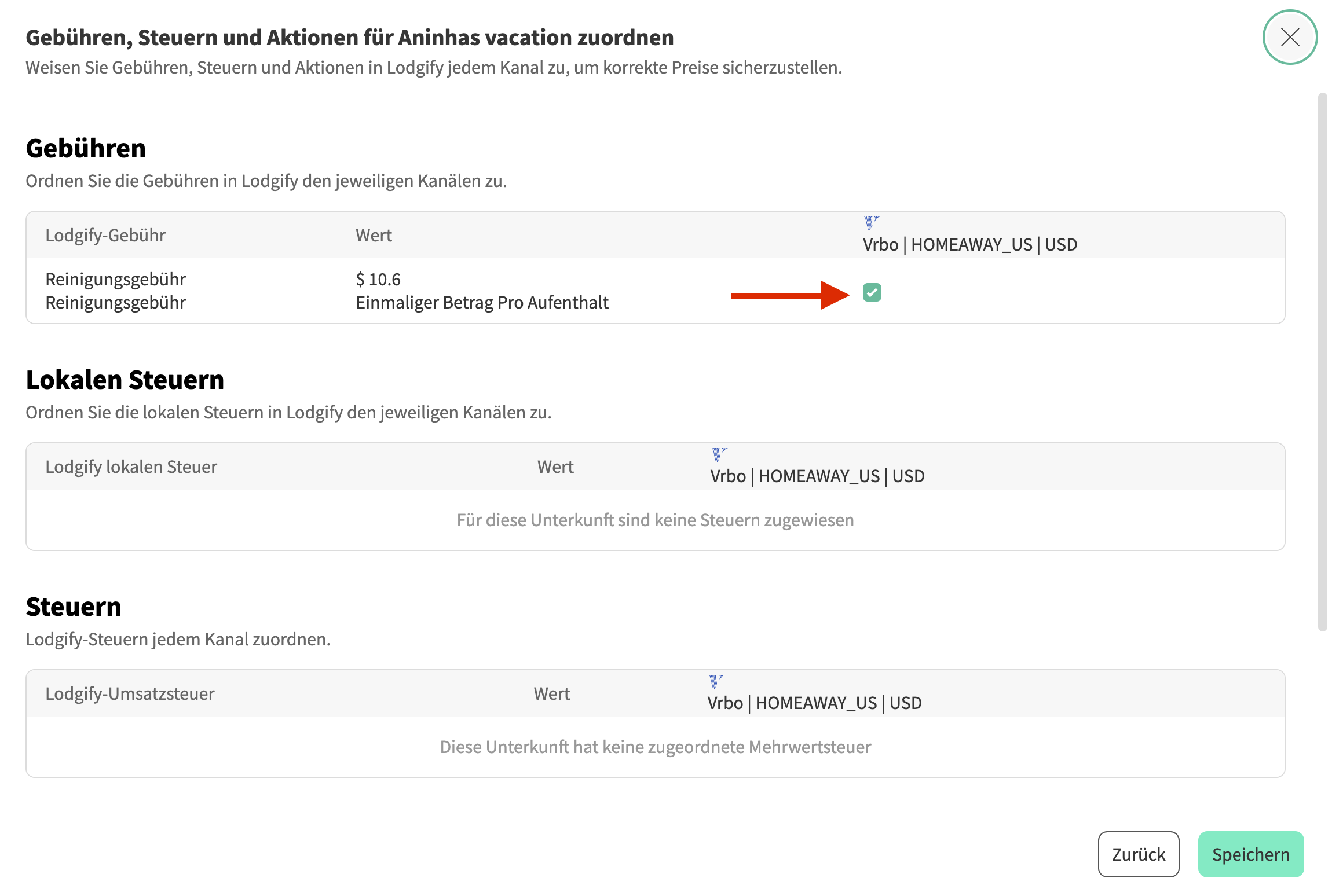 - Anschließend können Sie überprüfen, wie Ihre Preise, Steuern und Promotionen von Lodgify an Vrbo übermittelt werden.