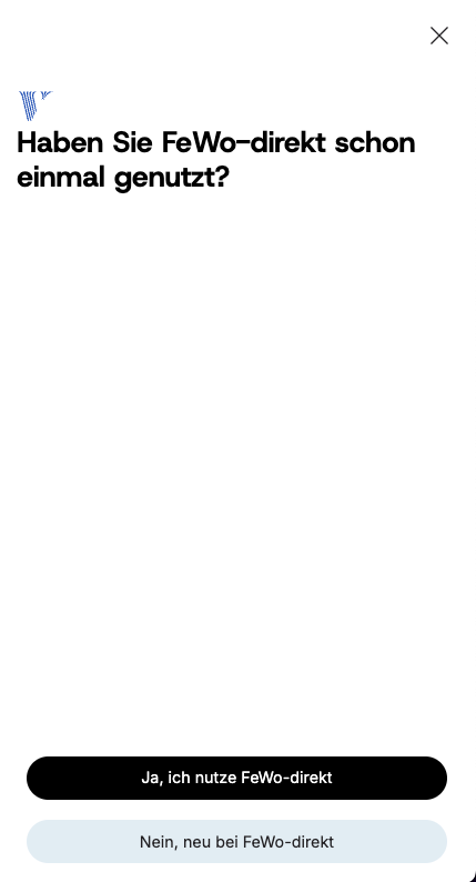 - Klicken Sie auf Ja, ich nutze FeWo-direkt und anschließend auf Ja, um zu bestätigen, dass Sie bereits ein Vrbo-Konto haben.