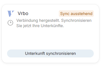 Sobald die Verifizierung auf Seiten von Vrbo abgeschlossen ist, ändert sich der Status in Lodgify von Verbindung wird hergestellt zu Sync ausstehend.
