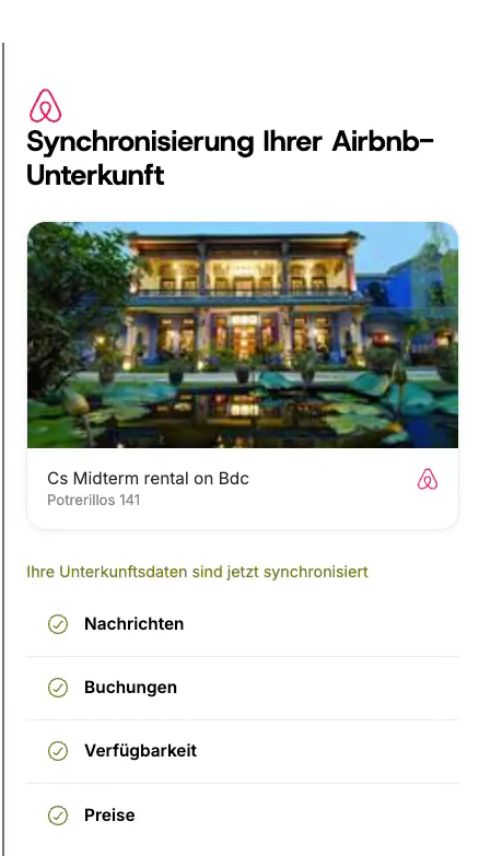 Sobald die Verbindung hergestellt ist, können Sie mit der Synchronisierung Ihrer Unterkunft beginnen.