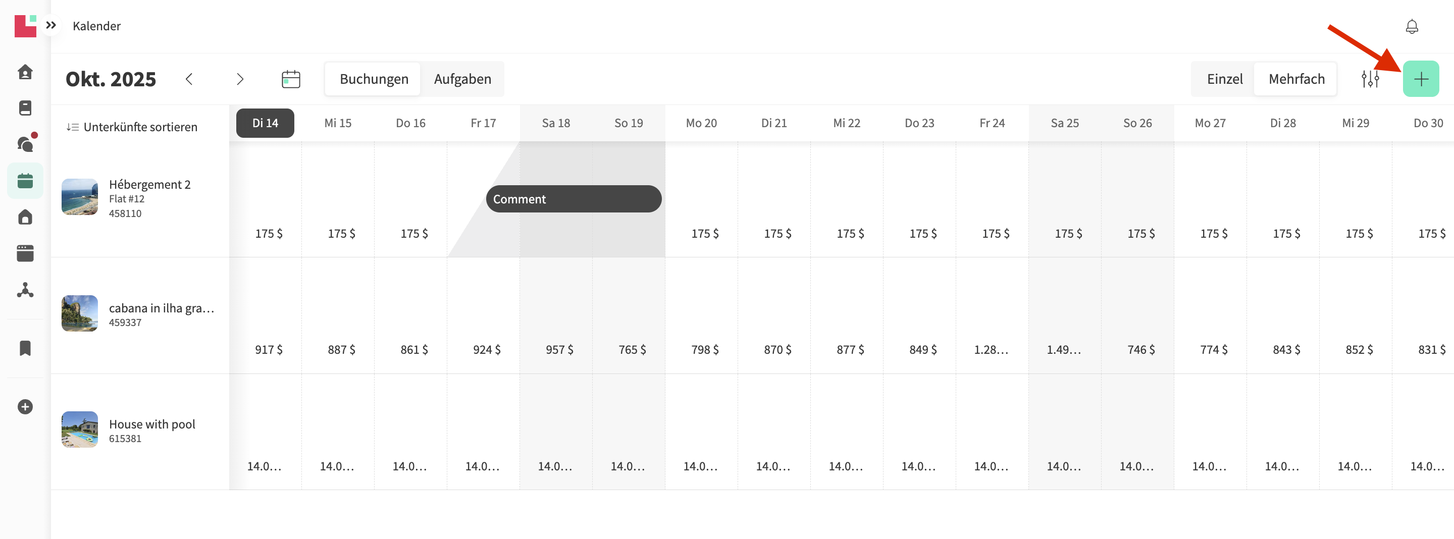 Wenn Sie möchten, dass eine Unterkunft für einen bestimmten Zeitraum nicht verfügbar ist, können Sie manuell einen geschlossenen Zeitraum in Ihrem Kalender erstellen, um die Verfügbarkeit zu blockieren. Manuell geschlossene Zeiträume können jederzeit gelöscht werden, um Ihren Kalender für Buchungen zu öffnen.