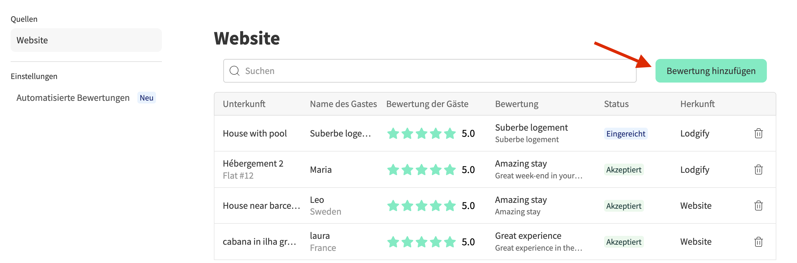 💡 Hinweis: Für Websites mit mehreren Unterkünften erscheinen die Bewertungen automatisch auf der Seite jeder einzelnen Unterkunf.