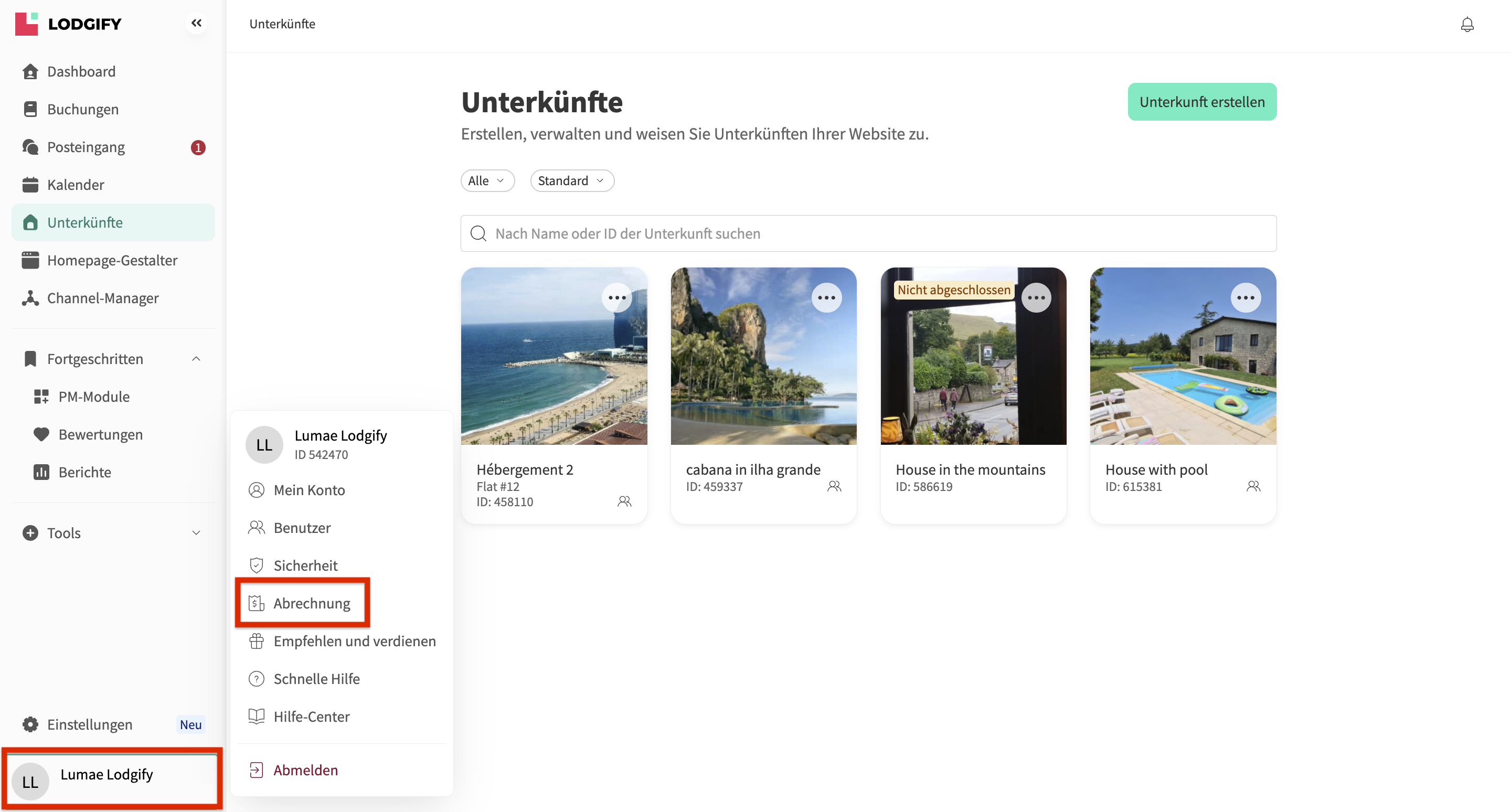Alle Ihre Lodgify-Rechnungen sind in Ihrem Konto verfügbar.
