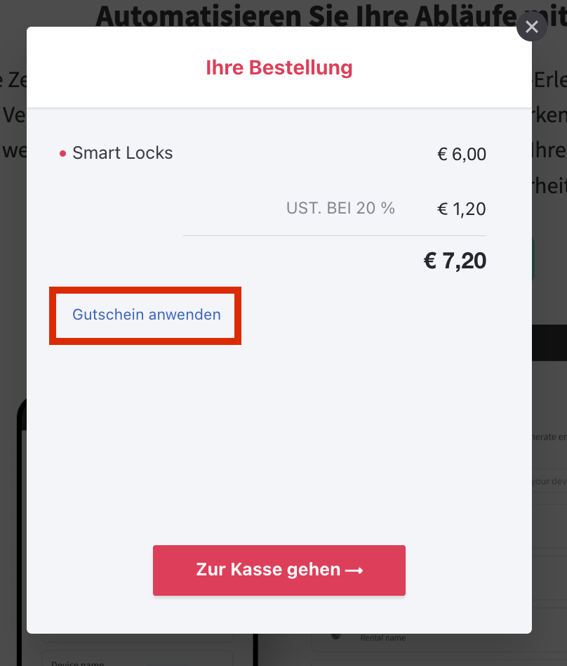 - Unterhalb des Gesamtpreises klicken Sie auf Gutschein anwenden.