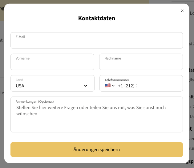 💡 Hinweis: Alle automatischen E-Mail-Benachrichtigungen werden in der ausgewählten Sprache versendet. Wenn Sie diese Sprache nicht in Ihren E-Mails eingerichtet haben, werden sie standardmäßig auf Englisch versendet. Erfahren Sie hier mehr über das Verwalten Ihrer automatischen E-Mails. - Ihre bevorzugte Telefonnummer. Sie können Ihren Gast über WhatsApp kontaktieren, sofern verfügbar.