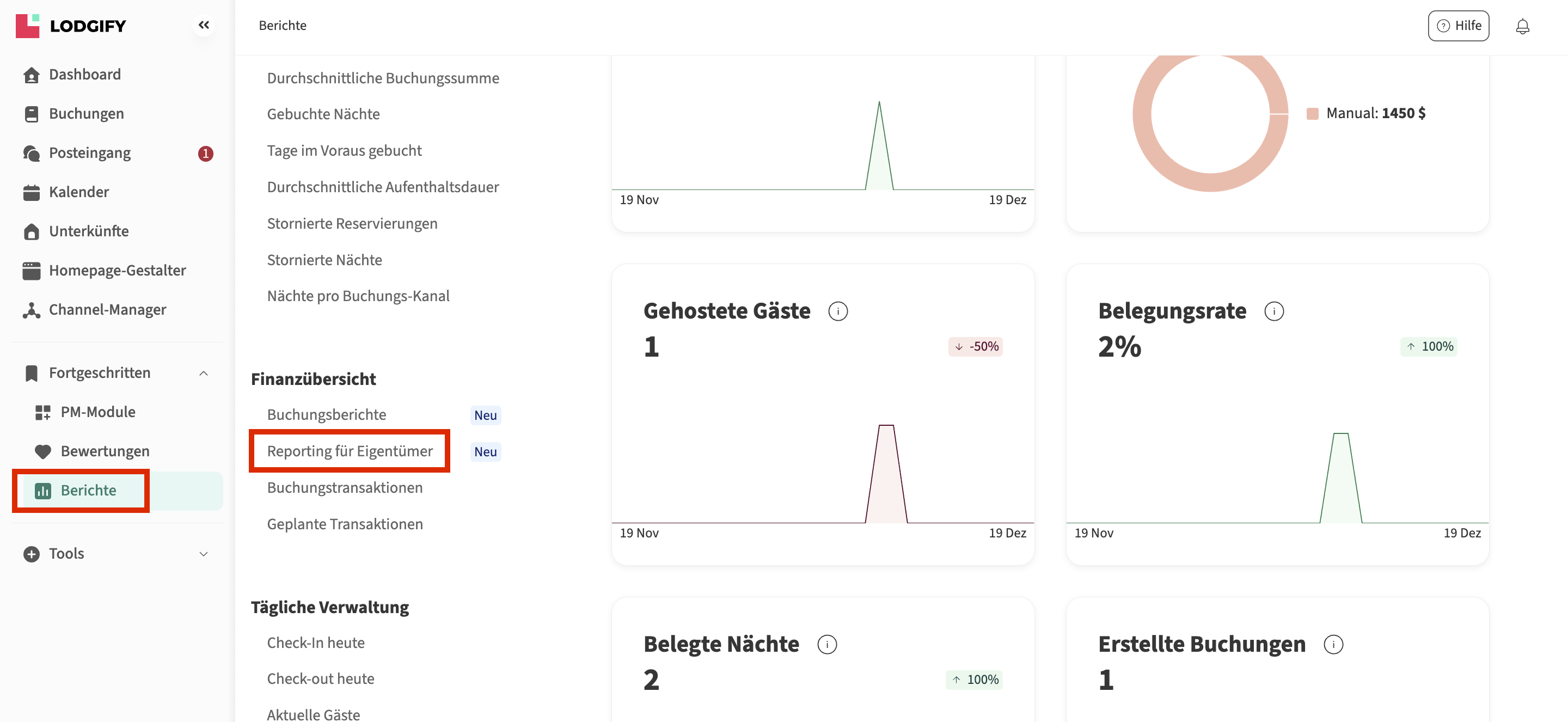 - Wählen Sie Reporting für Eigentümer aus der linken Seitenleiste.
