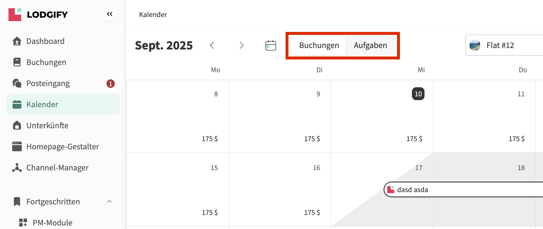 💡 Hinweis: Erfahren Sie hier, wie Sie Aufgaben in der Lodgify Mobile App verwalten.