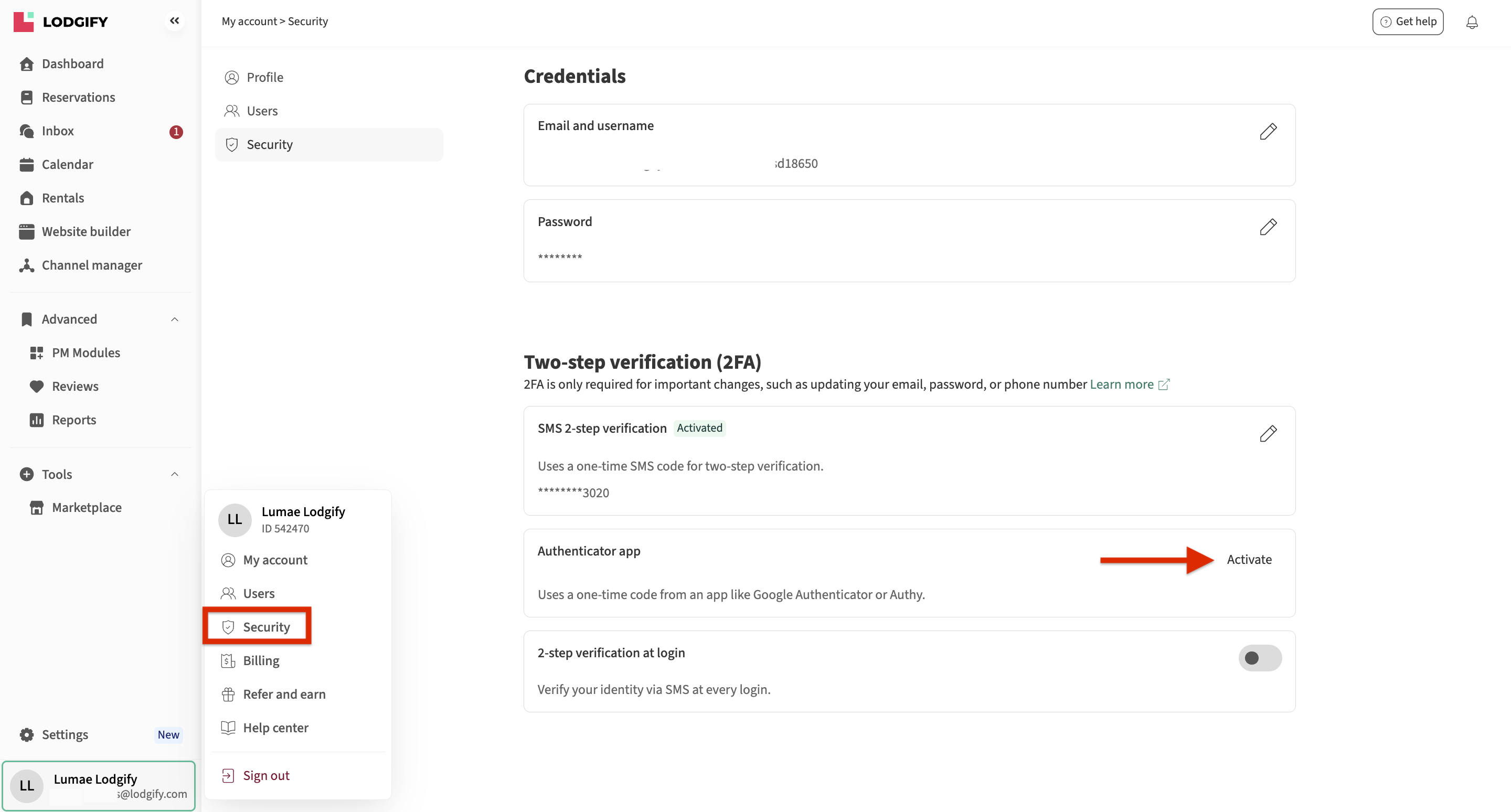 In Lodgify, you can choose to set up Two-Factor Authentication (2FA) to protect your login and/or the following critical actions: