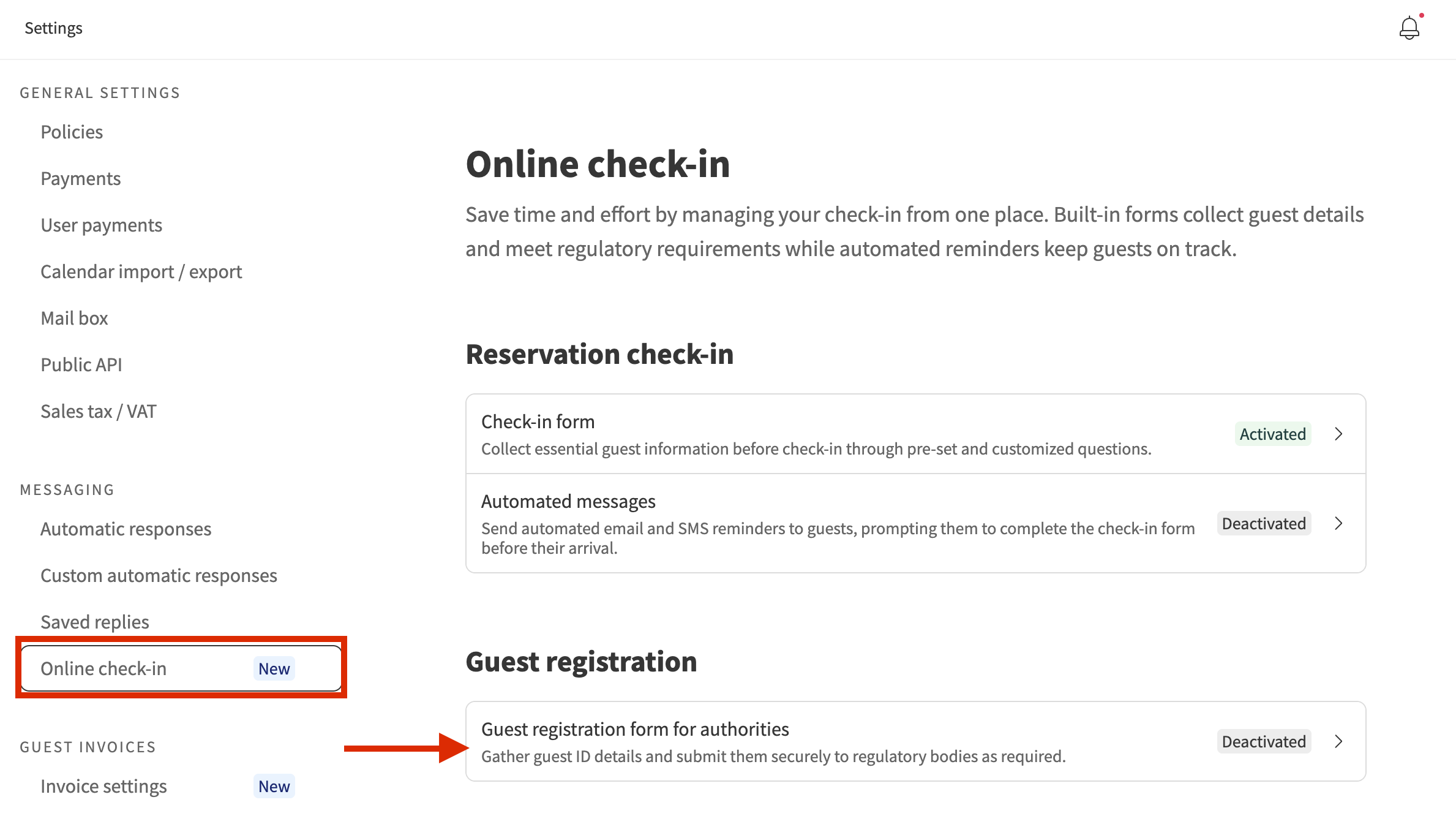 You can enable the Guest Registration feature to automate the collection of guest information required by local authorities. It adapts to the legal requirements of each region, ensuring you gather the right details. Once the information is collected, it is automatically sent to the relevant authorities, saving you time and ensuring compliance.