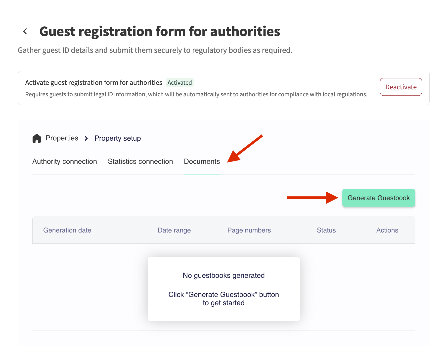 From here, you can Generate Guestbook. - Select the date range and choose whether the guestbook should also be sent to another email address in addition to yours.