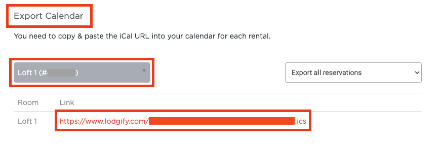 Click the red iCal link to download the Lodgify .ics file.