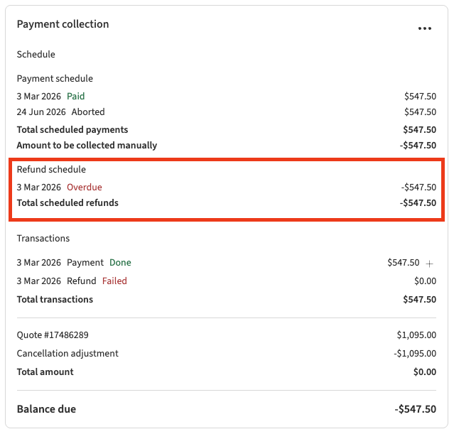 Locate the refund line marked in red as Overdue.