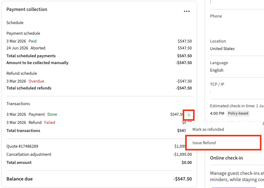 💡 Note: Automatically issued refunds are marked in green as Refunded in the reservation details.