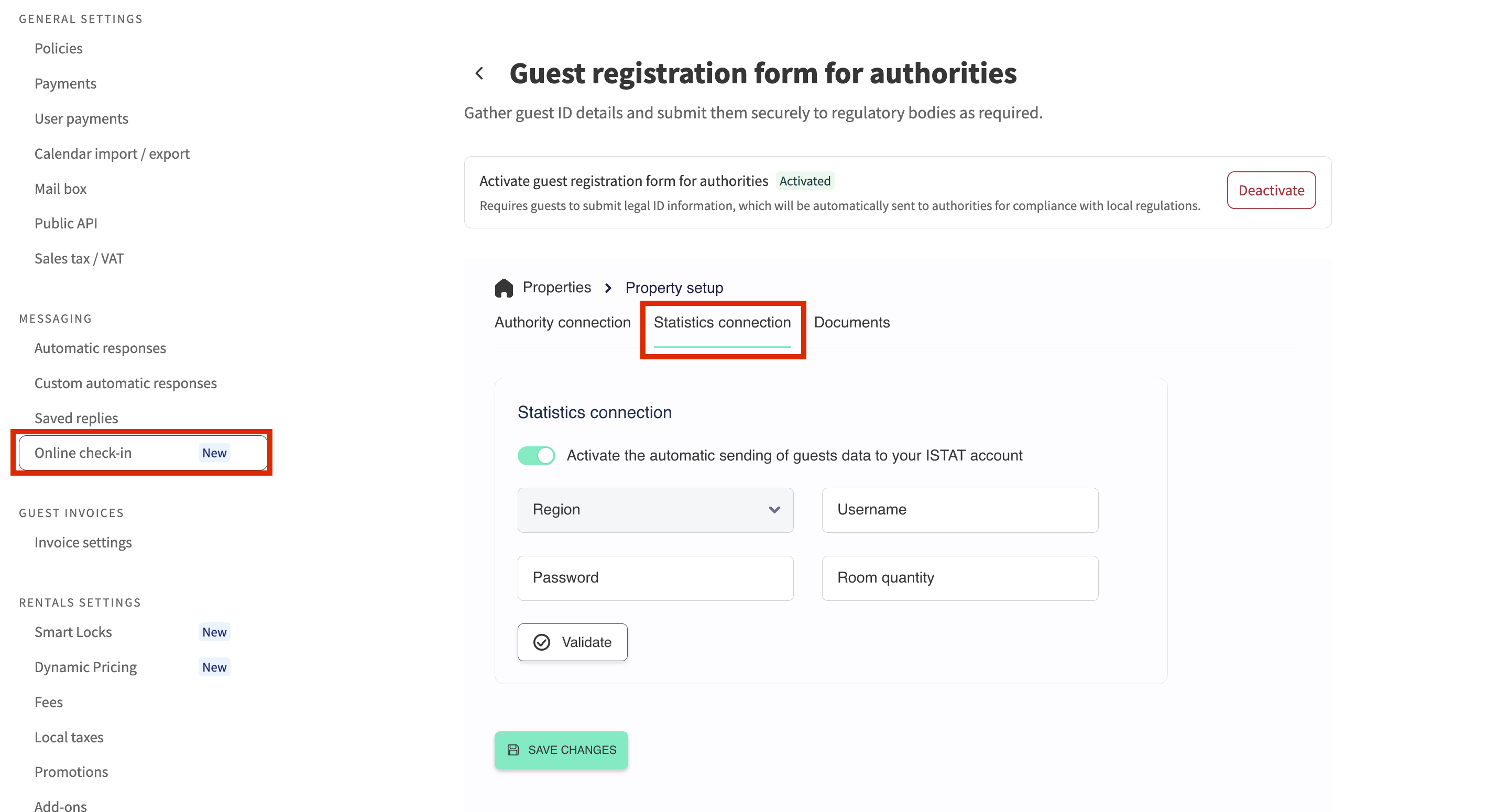 - Once activated, you will need to complete this section in the Guest Registration Form for Authorities tab in Lodgify for each rental you manage: