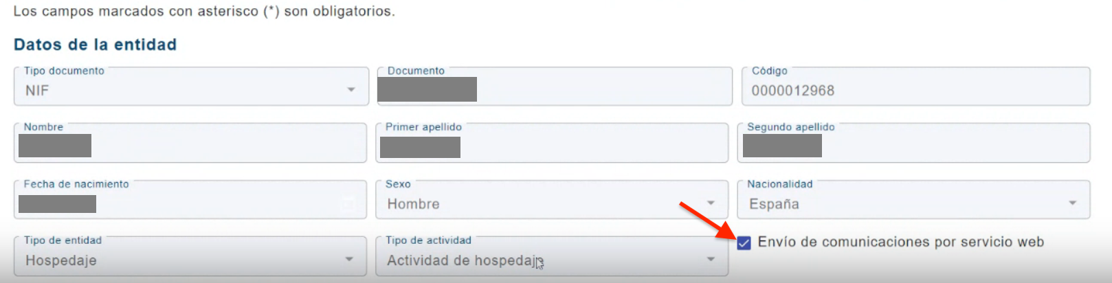 - And the end of the form, tick the box Envio de comunicaciones por servicio web and save the changes.