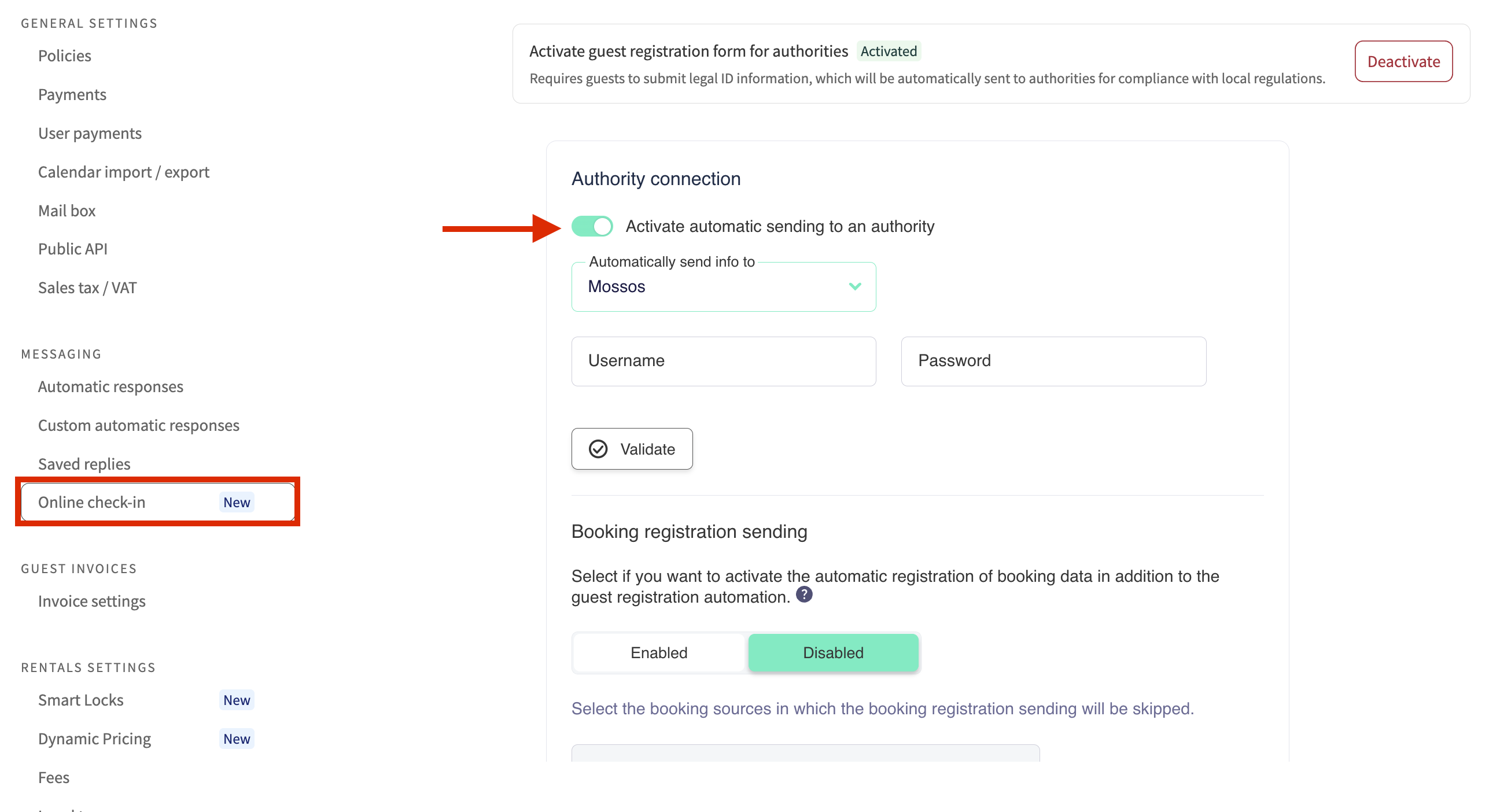 - On Lodgify, if you haven’t done so already, you will first need to activate the guest registration feature.