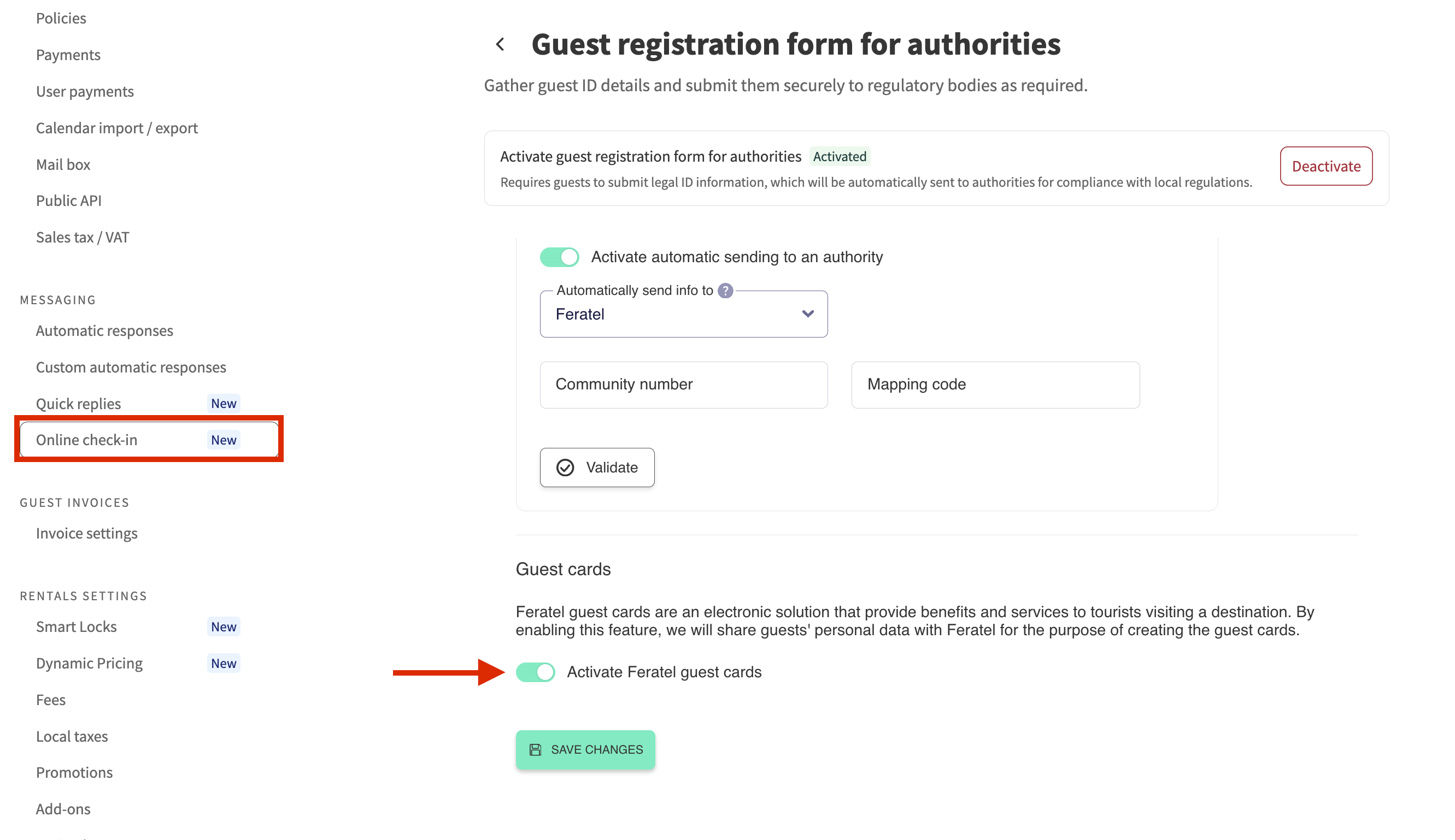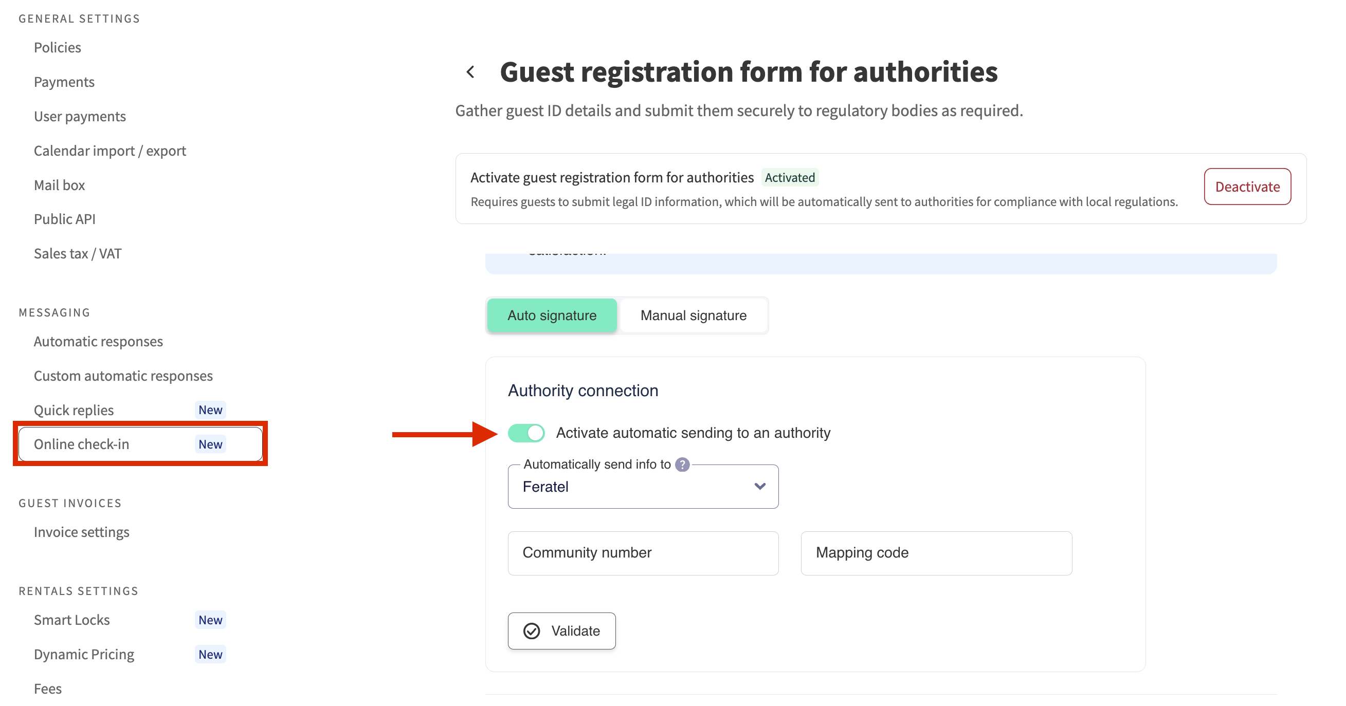 - On Lodgify, if you haven’t done so already, you will first need to activate the guest registration feature.