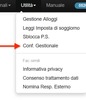 - If you are already on the WebCheckin interface, at the top click on Utilità and then Conf. Gestionale: