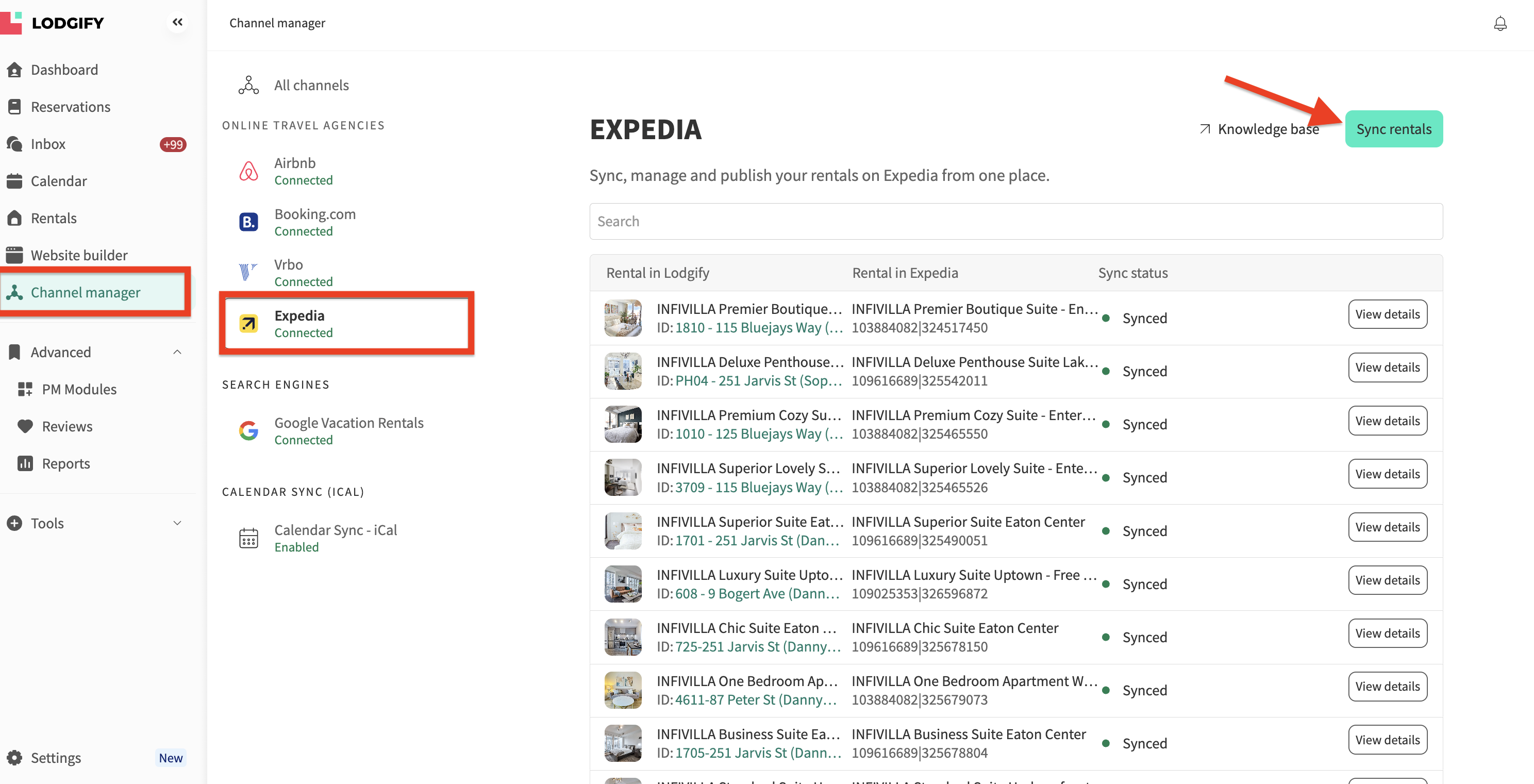 - The, complete the steps to sync your rentals. You can find detailed instructions on how to sync your rentals between Lodgify and Vrbo here.