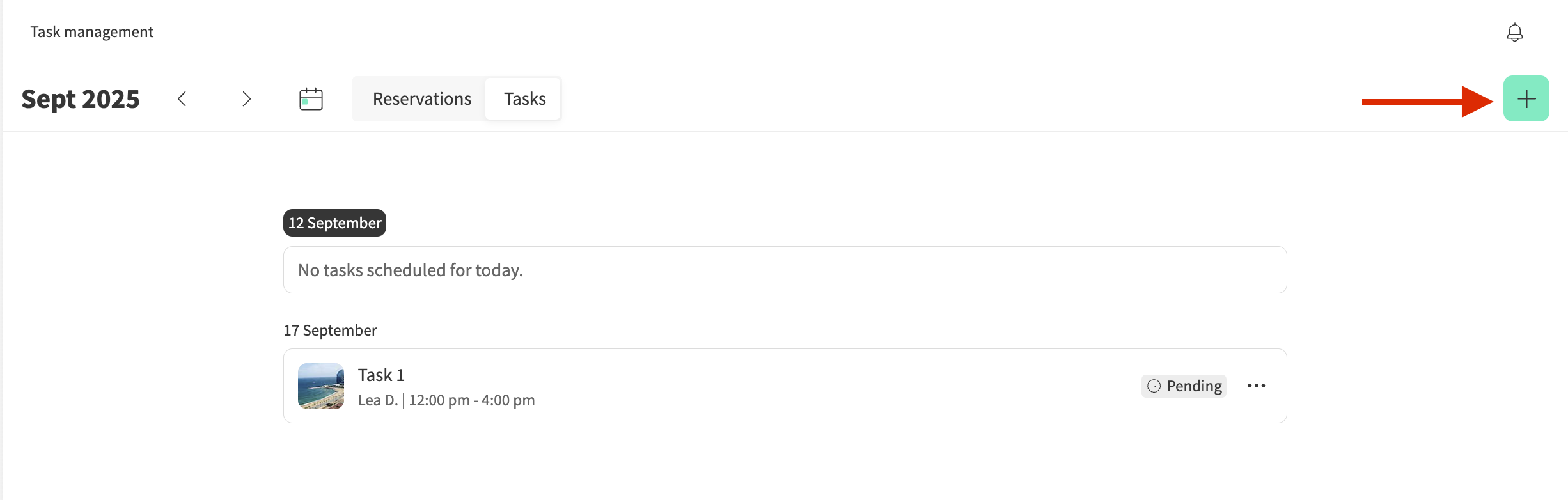 - Click on the + icon to create a task.