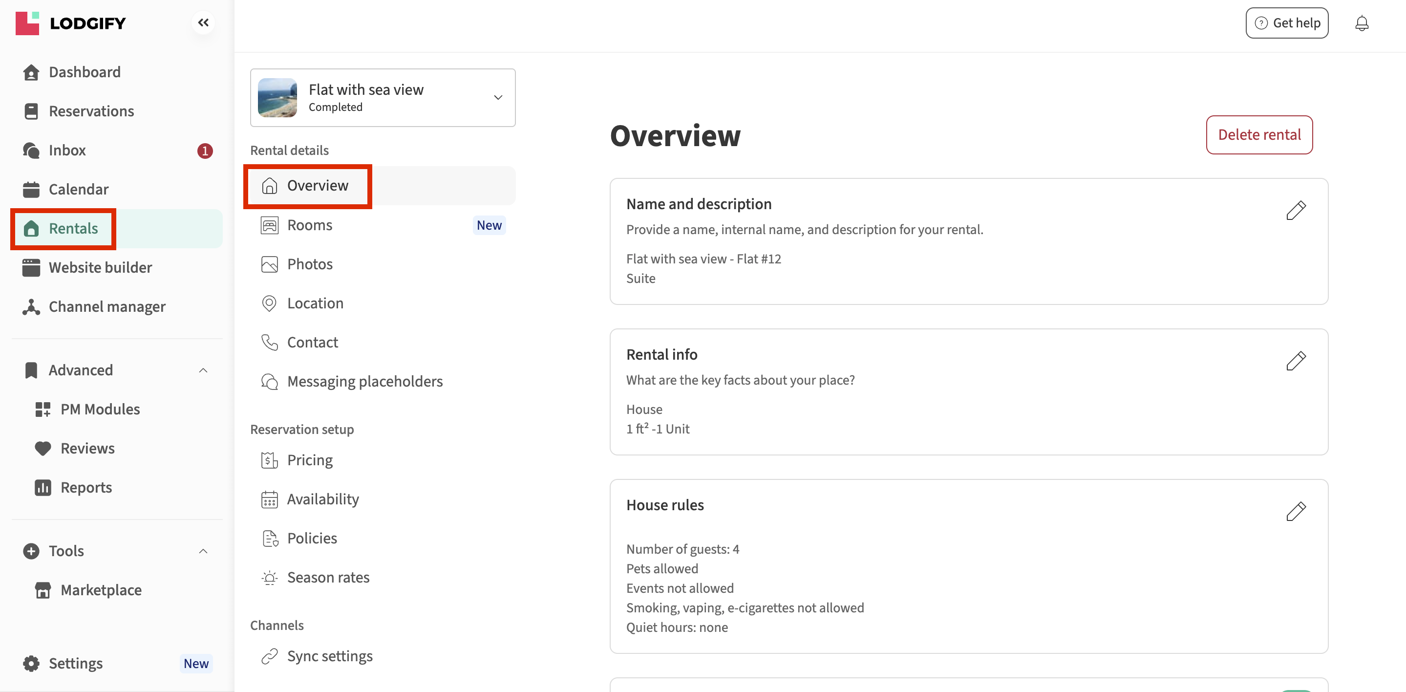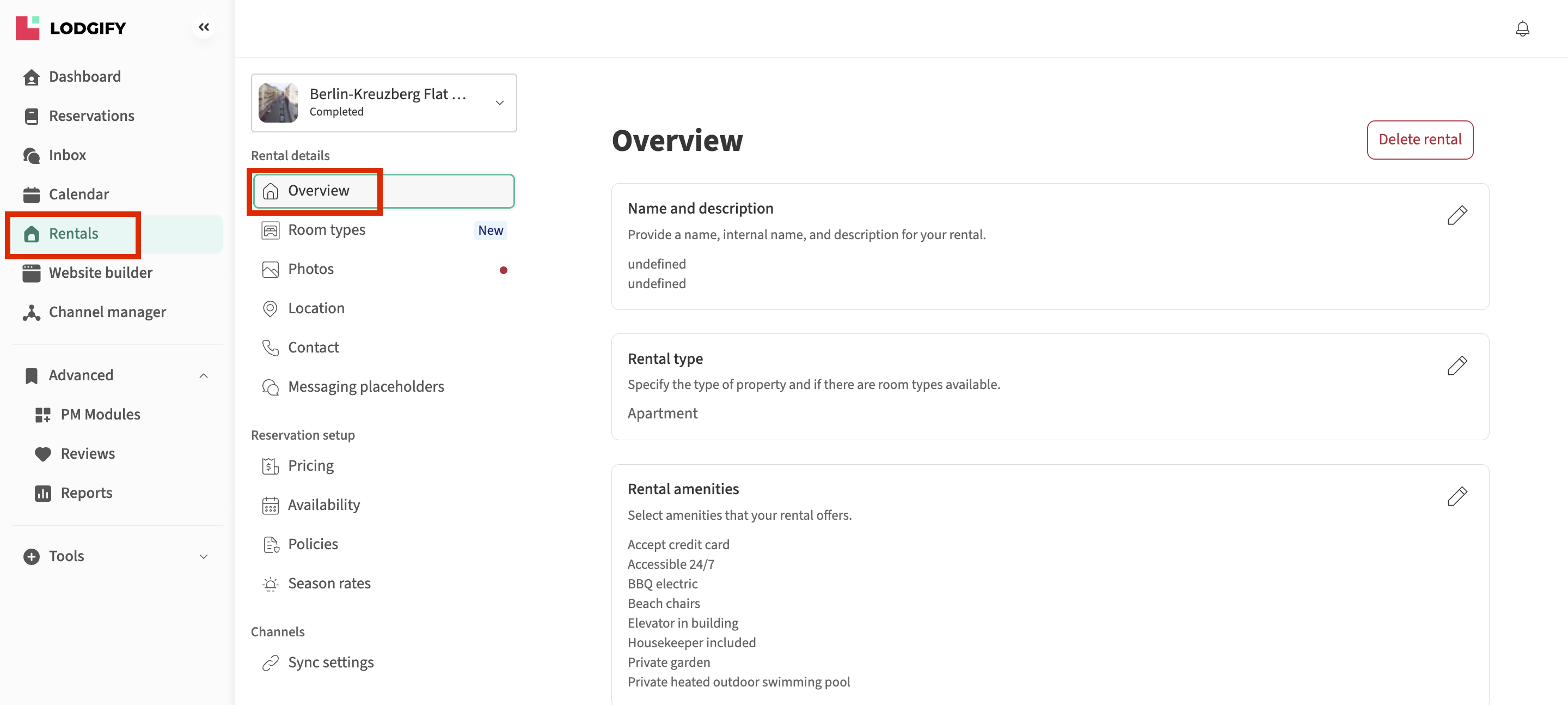- Go to your left-hand menu and select Rentals. Then choose the rental you want to edit and go to Overview.