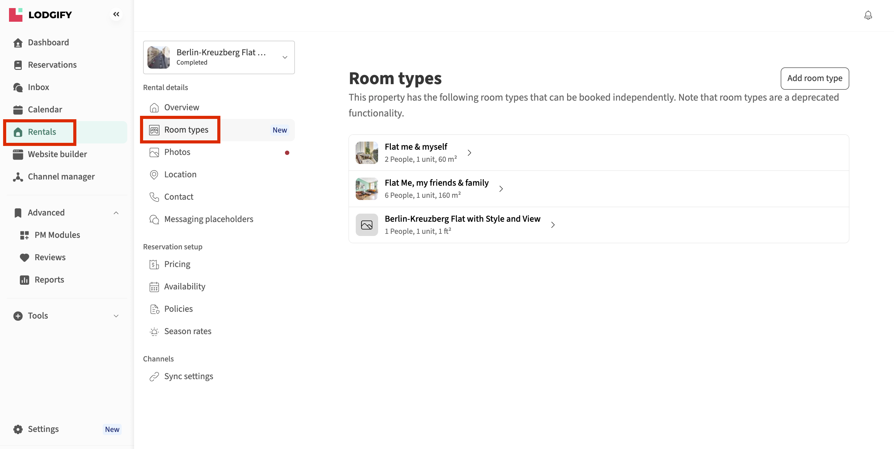 - Go to your left-hand menu and select Rentals. Then choose the rental you want to edit and go to Room types.