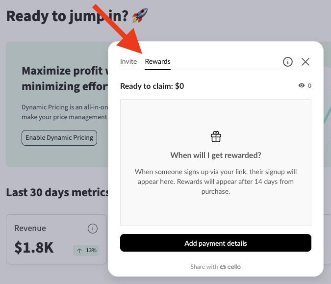 Copy your referral link by clicking the Copy invite link button if you want to send it manually, or use the social media icons to share it directly. - Get your reward