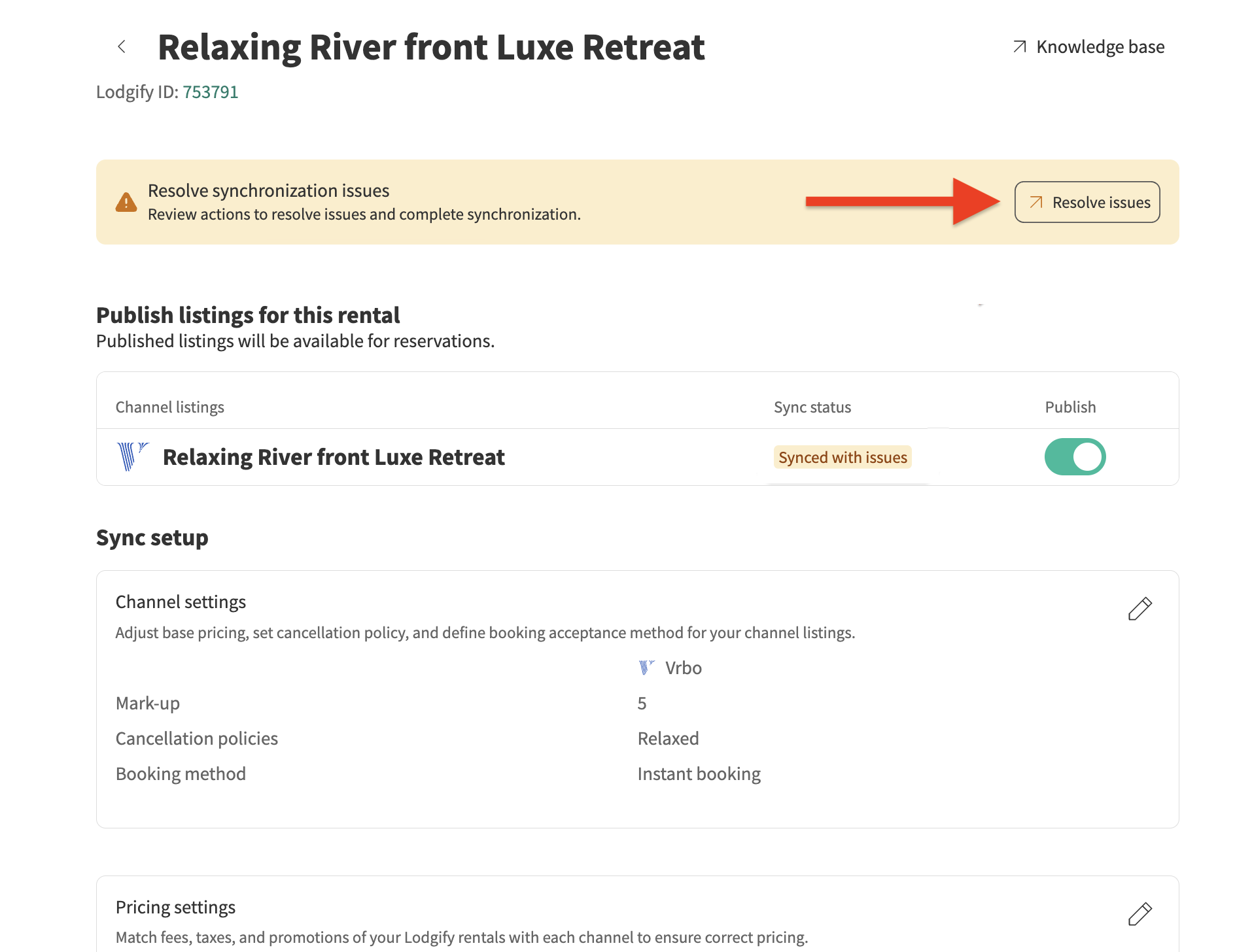 ⚠️ Important: Please resolve any sync issues within 5 days to avoid the risk of Vrbo canceling your project.