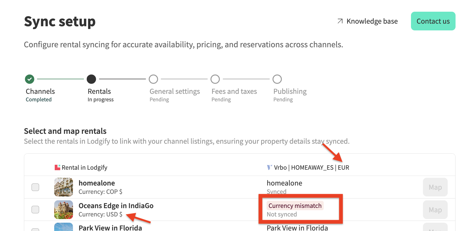 If most or all of your rentals have a currency mismatch, it’s recommended to create a new Vrbo account:- Create the new account using a new email address and set up your rentals in the same currency as your rentals on Lodgify.