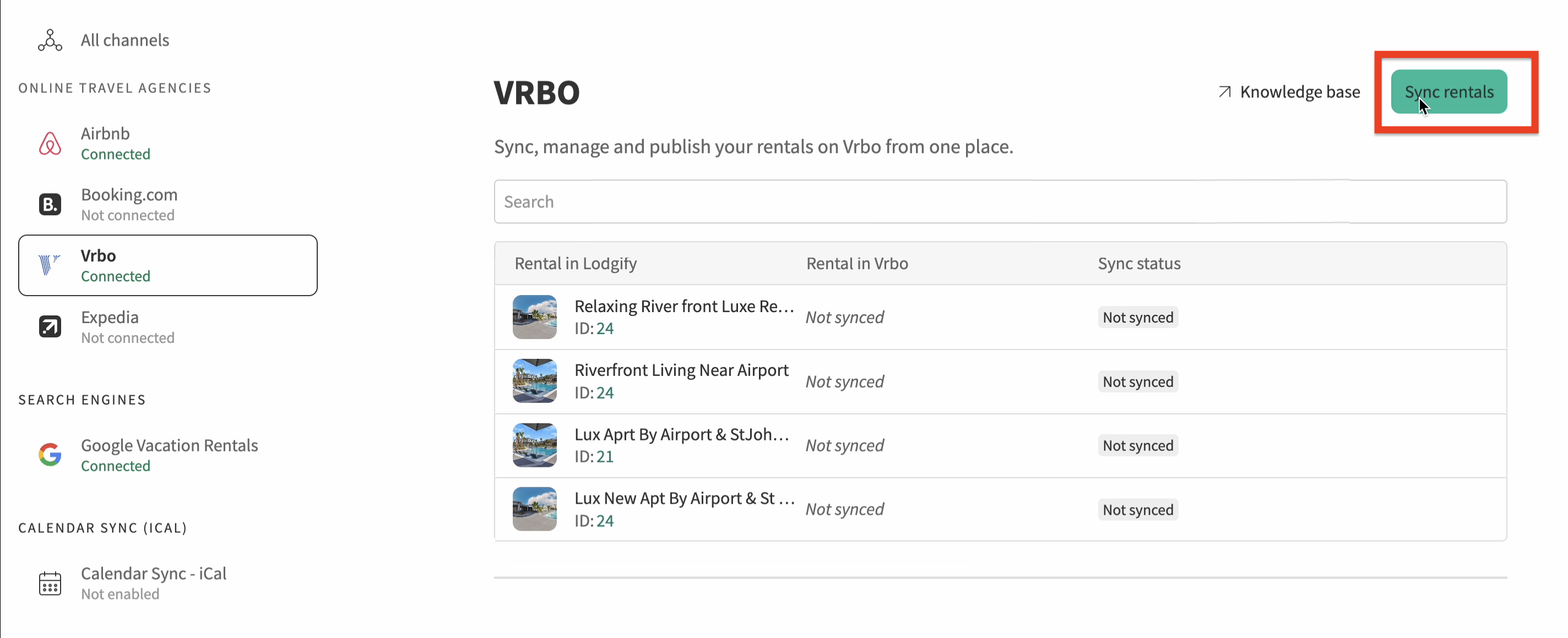 - If you do not yet have rentals inside your Vrbo account, the rentals can be pushed from Lodgify into Vrbo for you.