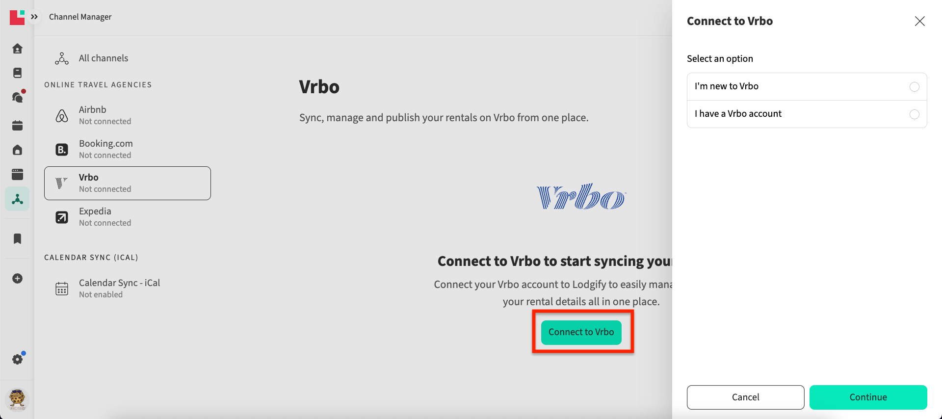 - Go to your left-hand menu and select Channel Manager and choose Vrbo.