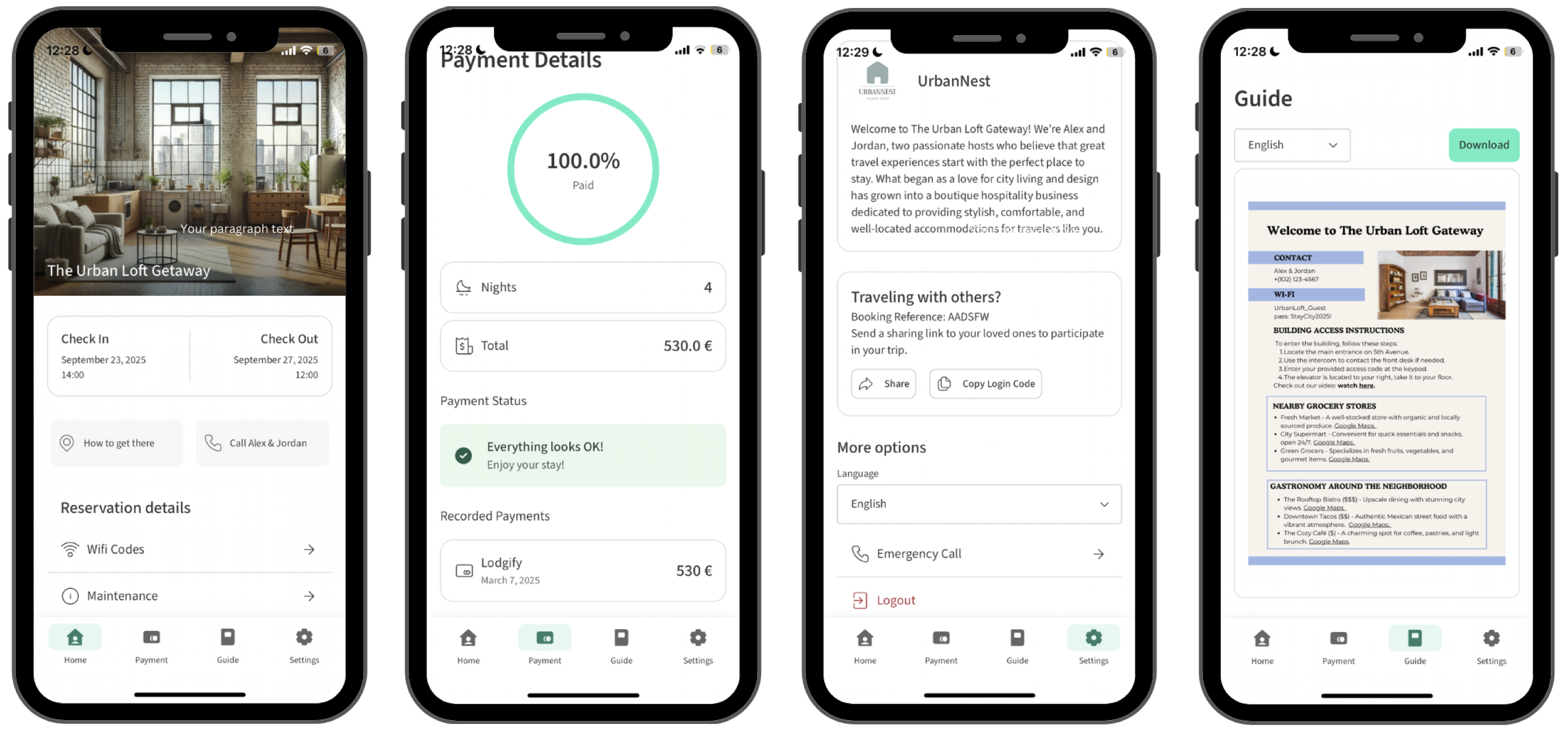 - All information in the guest module can be accessed by the guest from the Guest App (called Lodgify Guest) or from a desktop version, like the rental settings and guides.